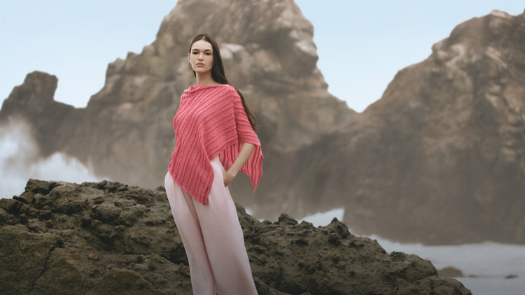 Poncho Zoila en tonalidad rosado, presenta una silueta amplia y diseño abierto en color entero....