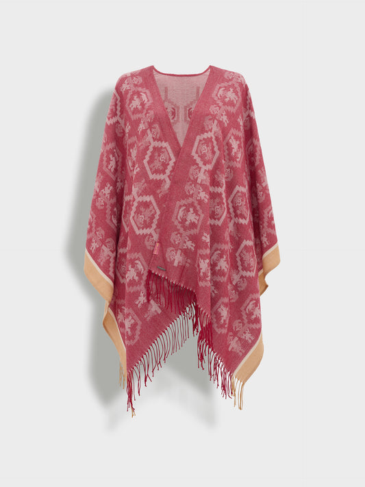 Poncho Chimu 12 en tonalidad rojo, elaborado en 100% Alpaca Royal con técnica Jacquard satín...