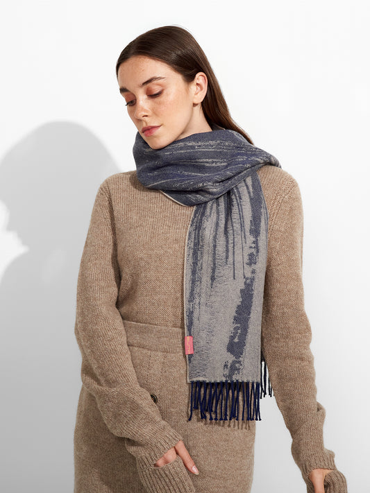 Chalina Chancay 37 en tonalidad azul, confeccionada en 100% baby alpaca con técnica Jacquard en...