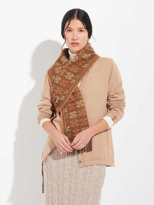 Chalina Chancay 36 en tonalidad marrón, elaborada en 100% baby alpaca con técnica Jacquard en...