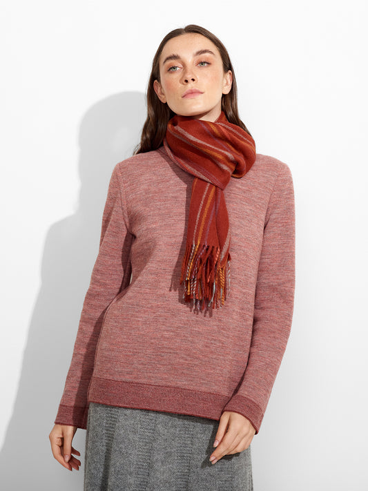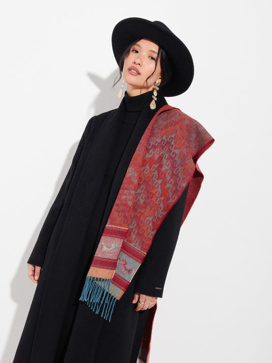 Chalina Chancay 37 en tonalidad rojo, confeccionada en 100% baby alpaca con técnica Jacquard en...