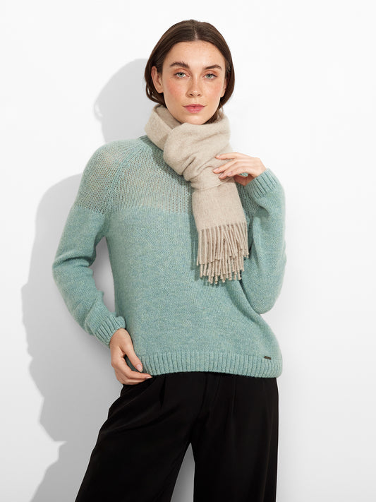 Clásica chalina de color entero, hecha con fibras de baby alpaca. La variedad en sus...