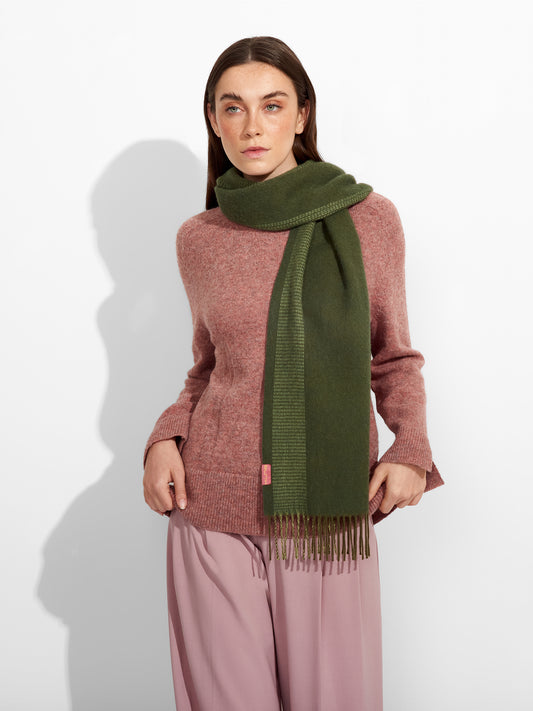 Chalina Zeta en tonalidad verde, de diseño de color entero con bordes terminados en flecos...
