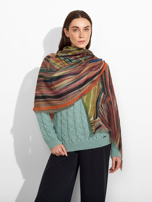Alegres colores plasmados en nuestra estola Willapa, elaborada en baby alpaca y seda, combinación que...