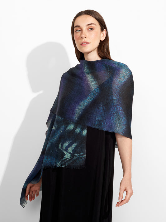 Las profundidades del océano Pacífico inspiran esta estola, reflejando la esencia del Archipiélago de Juan...