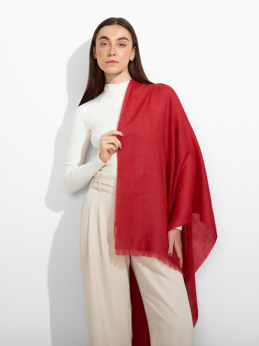 Estola Alondra en tonalidad rojo, de color entero, presenta bordes con flecos finos. Confeccionada en...