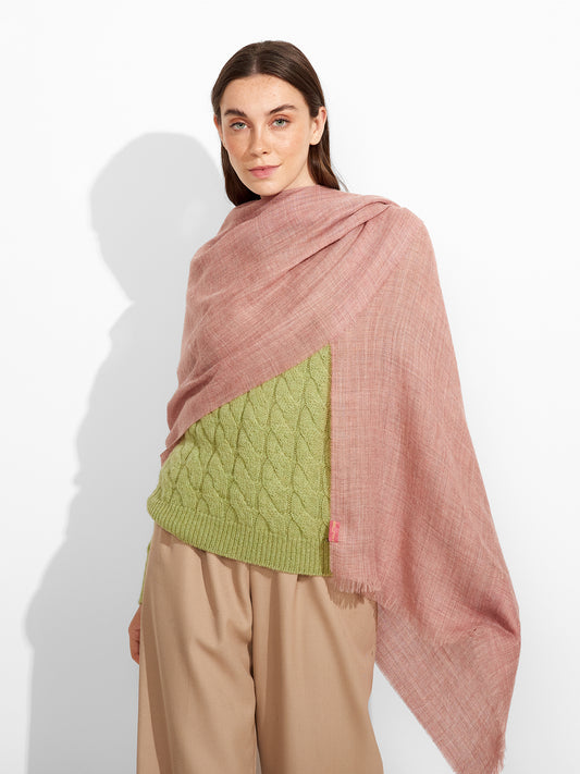 Estola Amareto en tonalidad rosado, de color entero, presenta bordes con flecos finos. Confeccionada en...