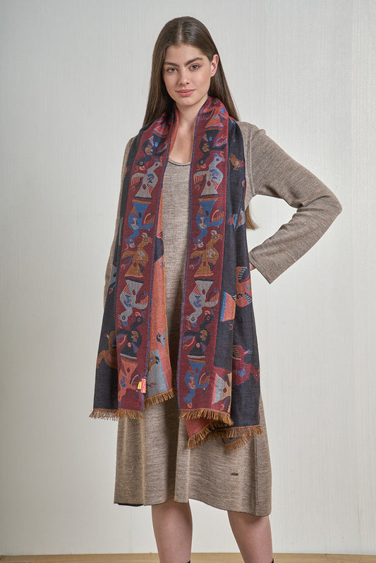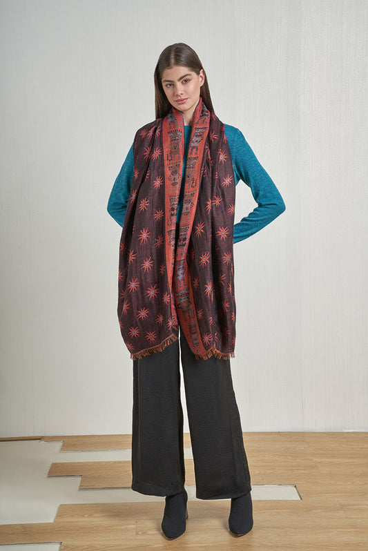 Estola Lambayeque 9 en tonalidad rojo, elaborada en 50% Royal alpaca y 50% seda, con...