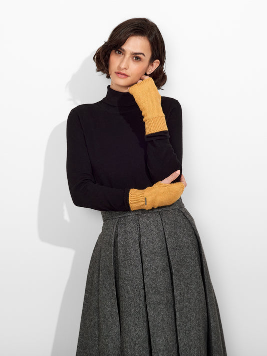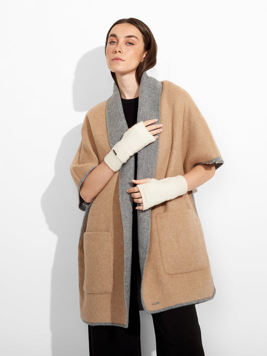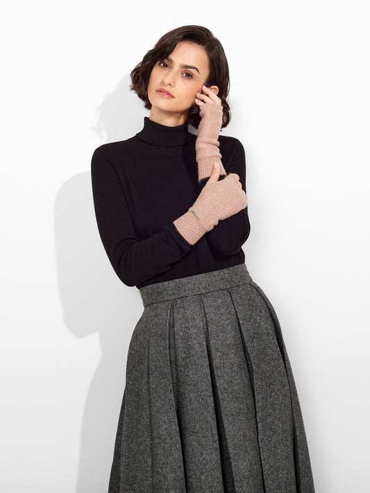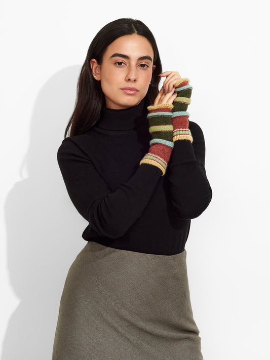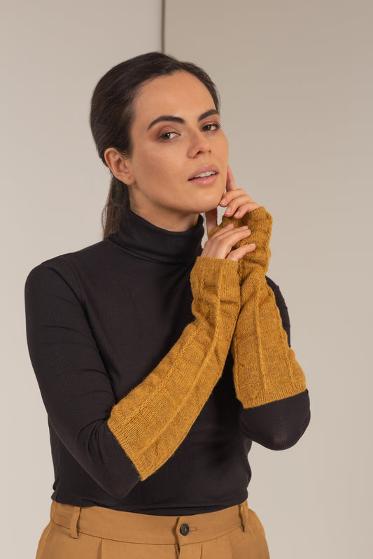 Guantes en brillantes colores confeccionados integramente de baby alpaca, con abertura en los dedos. |...