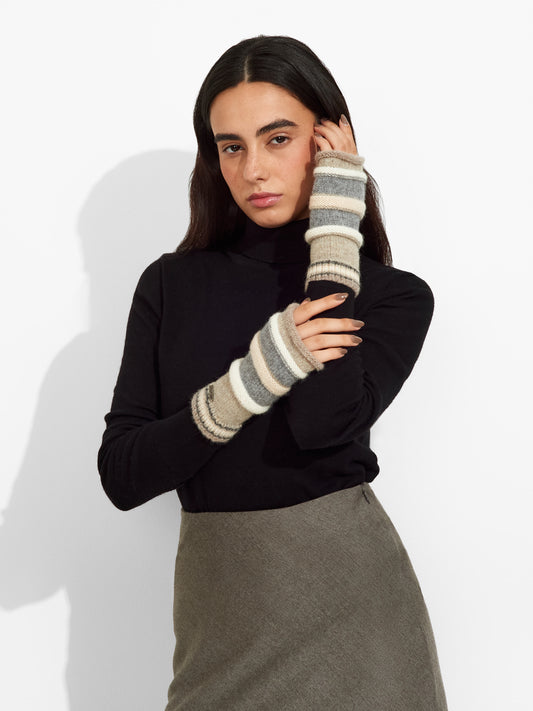 Guantes Zanni en tonalidad beige, con diseño de rayas horizontales que aportan un estilo distintivo....
