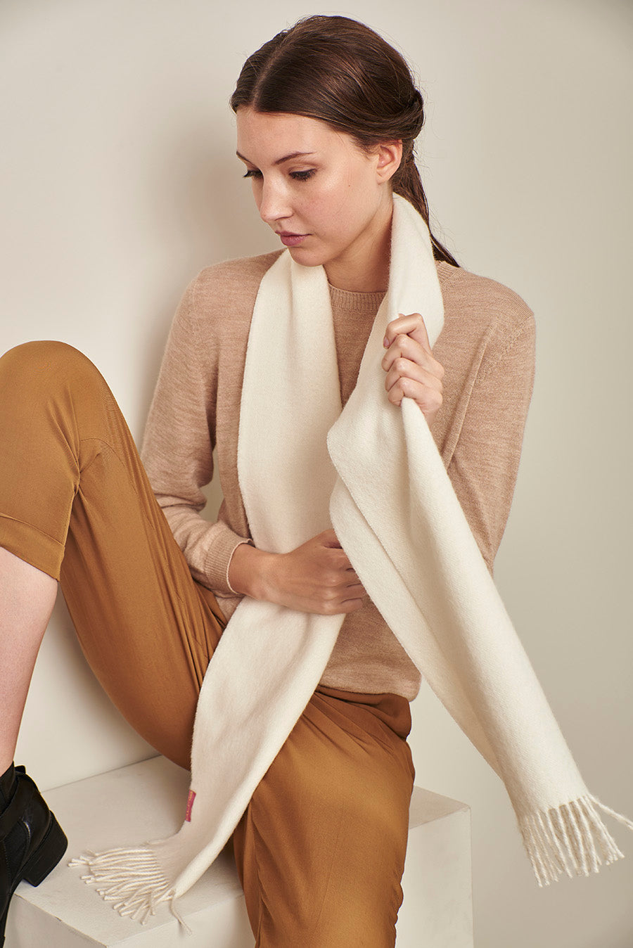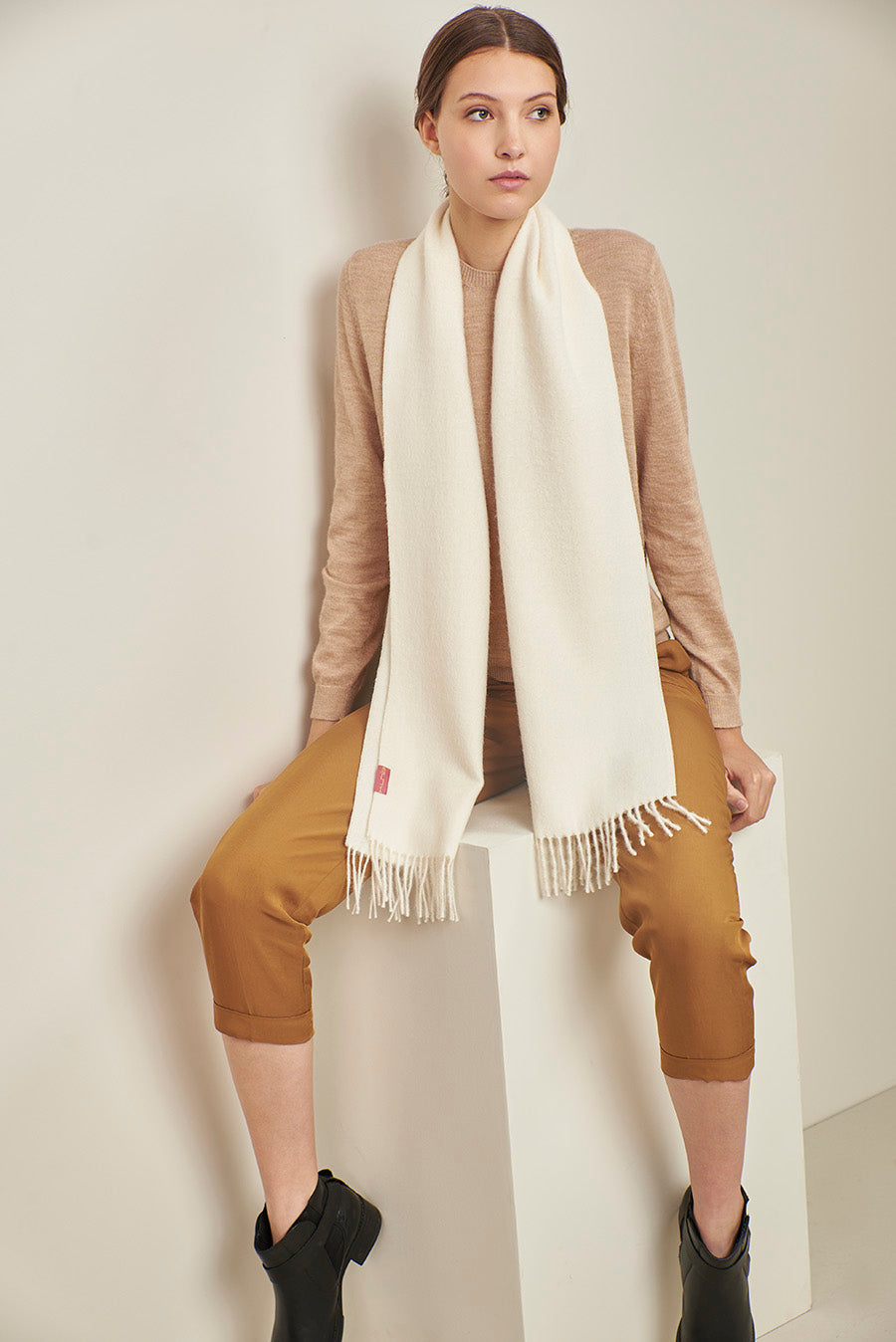 Clásica chalina de color entero, hecha con fibras de baby alpaca. La variedad en sus tonalidades la convierten en el complemento ideal para cualquier look. | Material predominante: Baby Alpaca