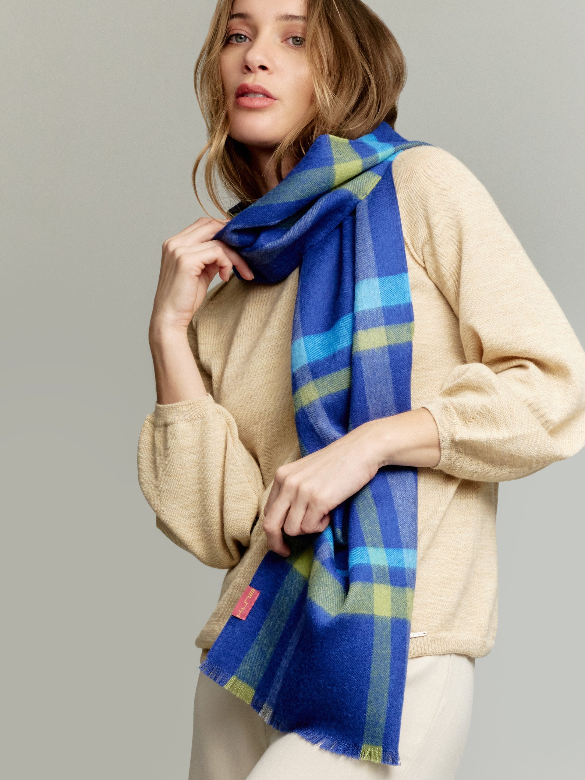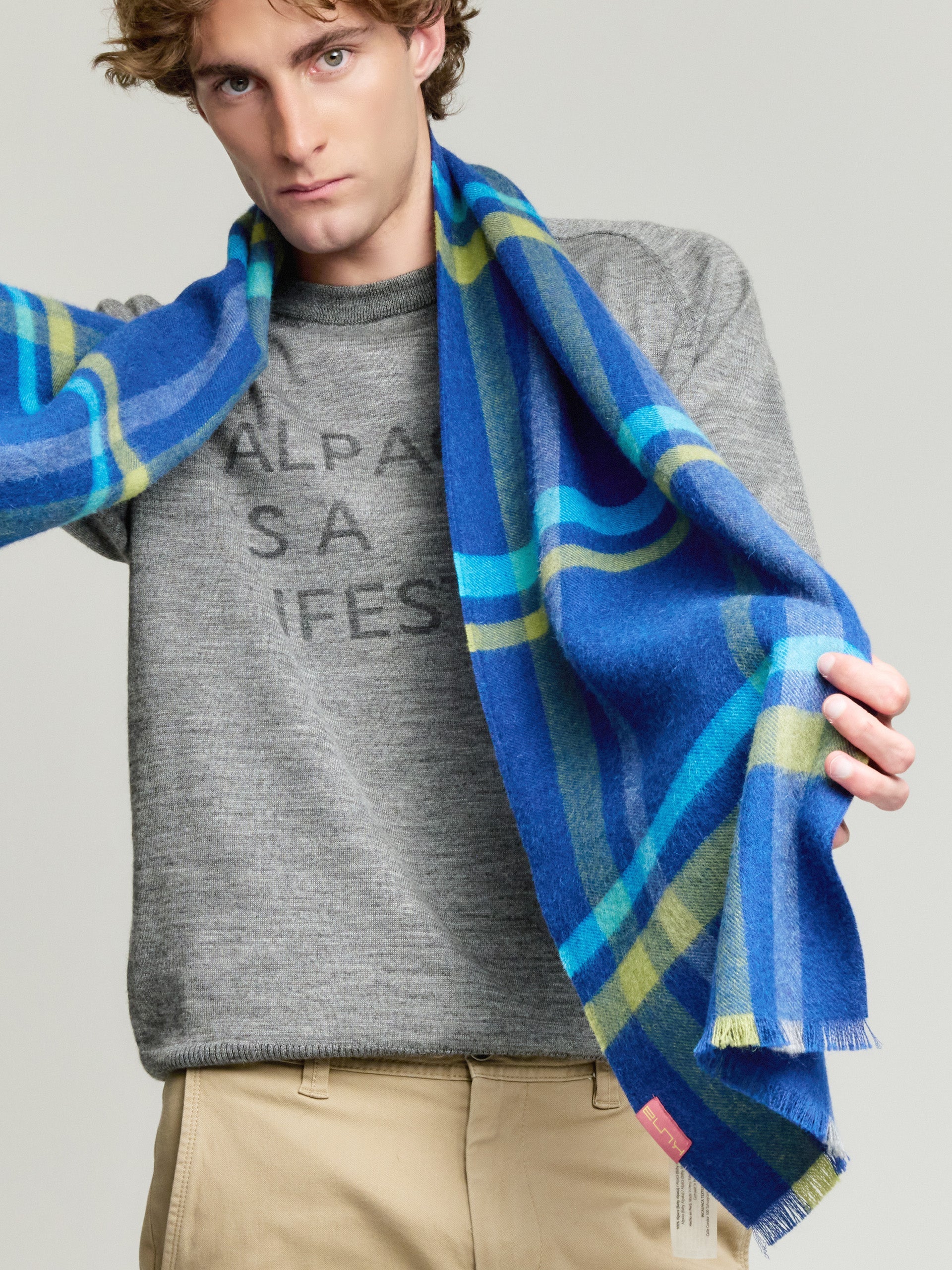 Chalina de baby alpaca: cálida, suave y chic. Su diseño a cuadros añade un toque de elegancia. Ideal para todas las ocasiones, disponible en tres tonos. Combina estilo y confort para destacar en otoño e invierno. ¡Envuélvete en lujo con esta prenda atemporal! | Material predominante: Baby Alpaca
