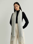 La chalina Yamileth, con su color suave y delicados acabados, representa la máxima expresión de elegancia. Elaborada con exquisita combinación de baby alpaca y lana, esta chalina no solo realza tu estilo, sino que también te envuelve en una suavidad y calidez incomparables. Un complemento que eleva tu presencia con distinción. | Material predominante: Baby Alpaca & Lana