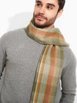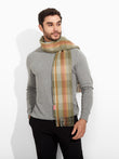 Chalina Zamery en tonalidad verde, con un patrón de cuadros grandes que incorpora un sutil efecto degradado, presenta bordes con flecos finos. Confeccionada en baby alpaca, brinda calidez y suavidad. | Material predominante: Baby Alpaca