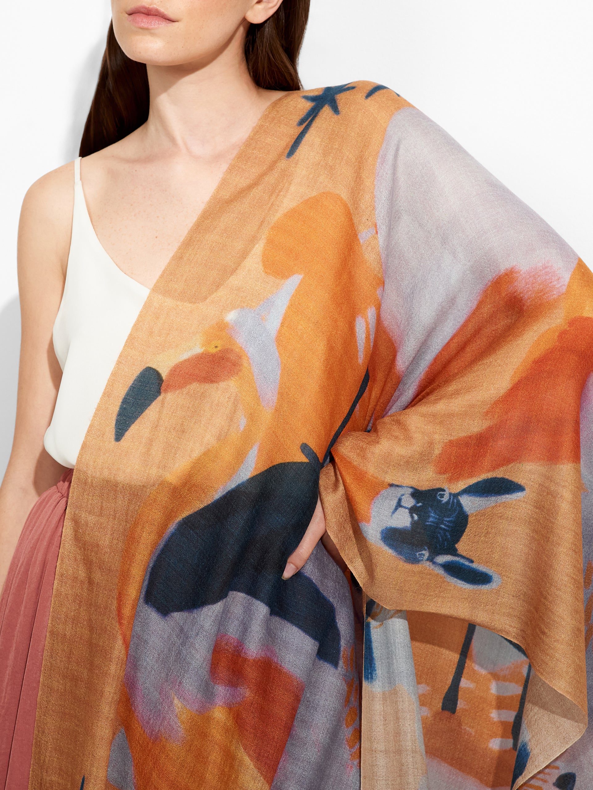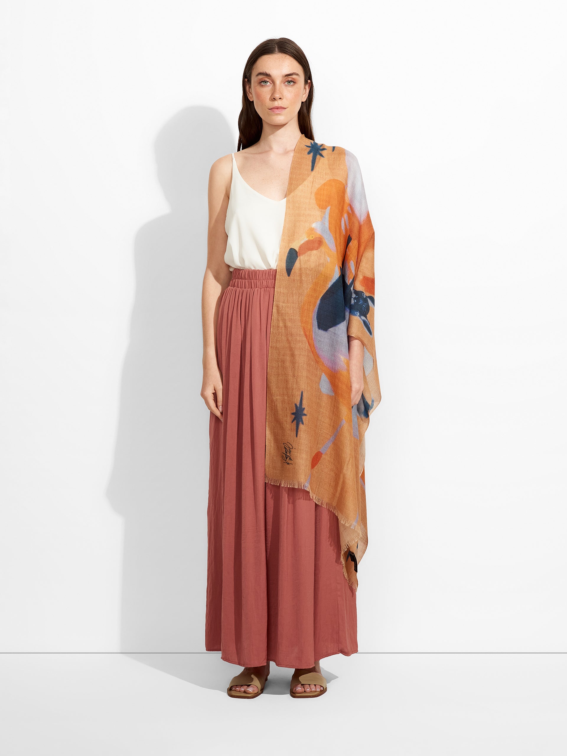 La fauna de San Pedro de Atacama se refleja en esta estola, capturando su esencia en un diseño exclusivo. Tejida con una refinada mezcla de baby alpaca y seda, su textura envolvente ofrece una sensación de calidez y sofisticación. Más que un complemento, es la armonía perfecta entre herencia y vanguardia.
