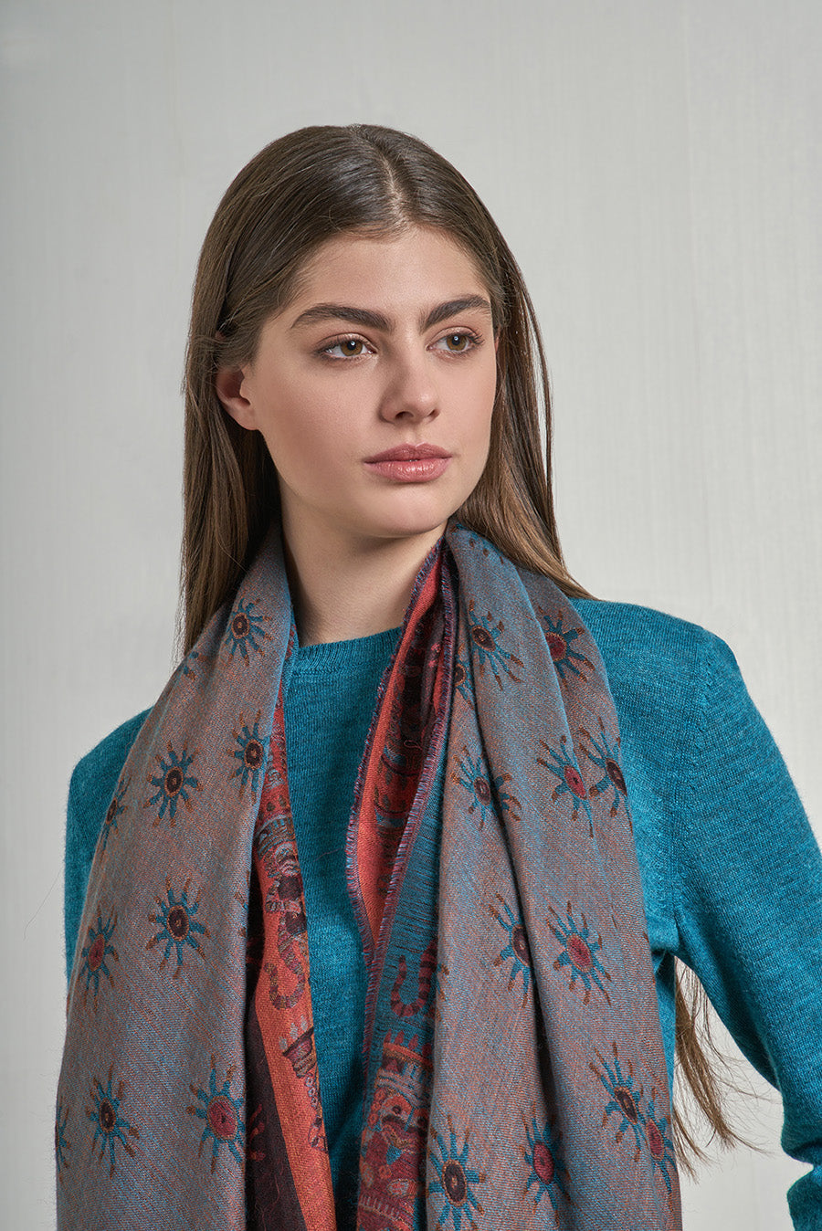 Nuestra colección Kuna Milenium es un tributo a la herencia cultural y artística de las culturas antiguas de Perú. Encuentra un poco del arte de la cultura Nazca, plasmado en un delicado y elegante tejido de royal alpaca y seda. Un accesorio envolvente y elegante. | Material predominante: Royal Alpaca & Seda
