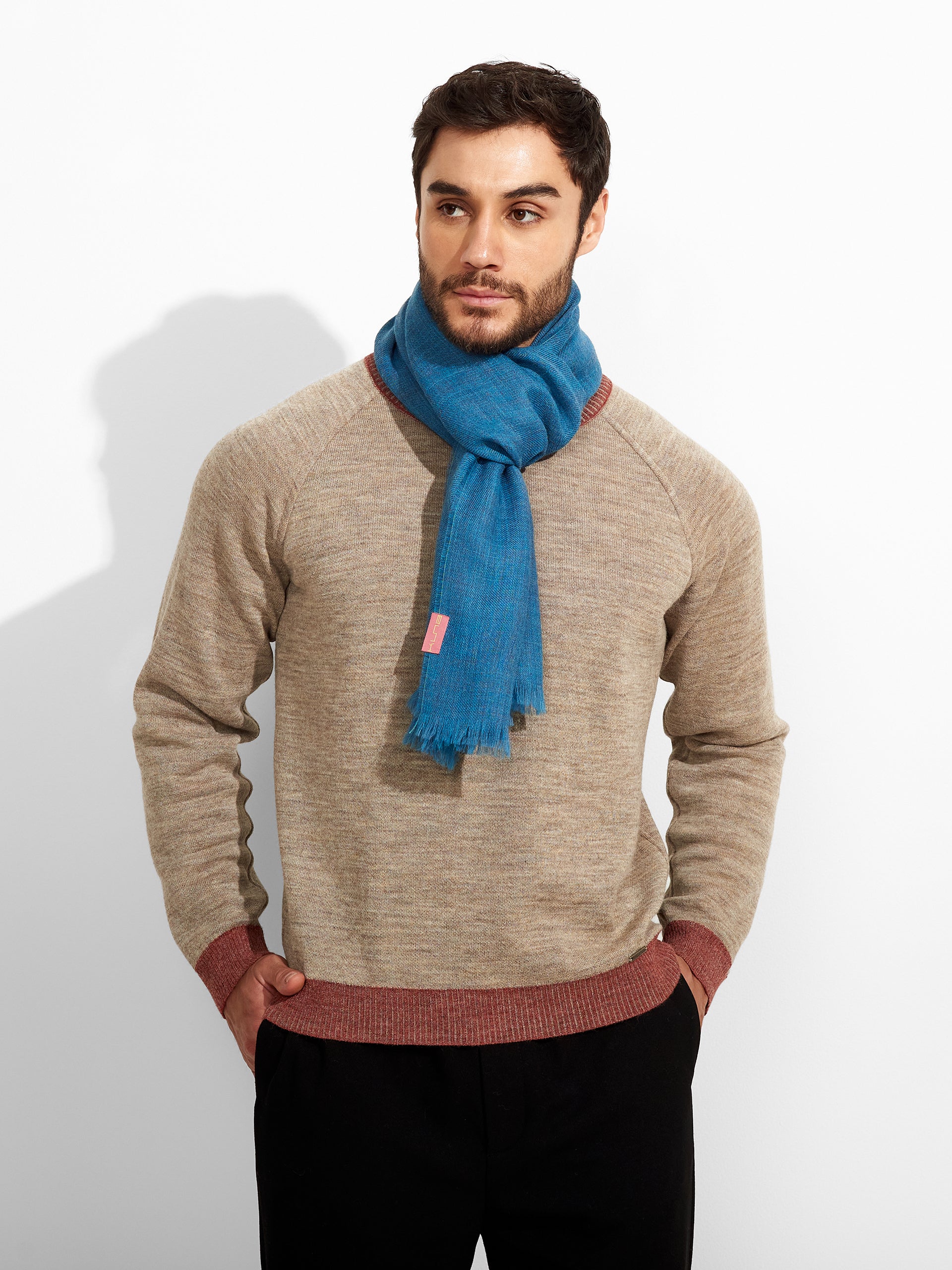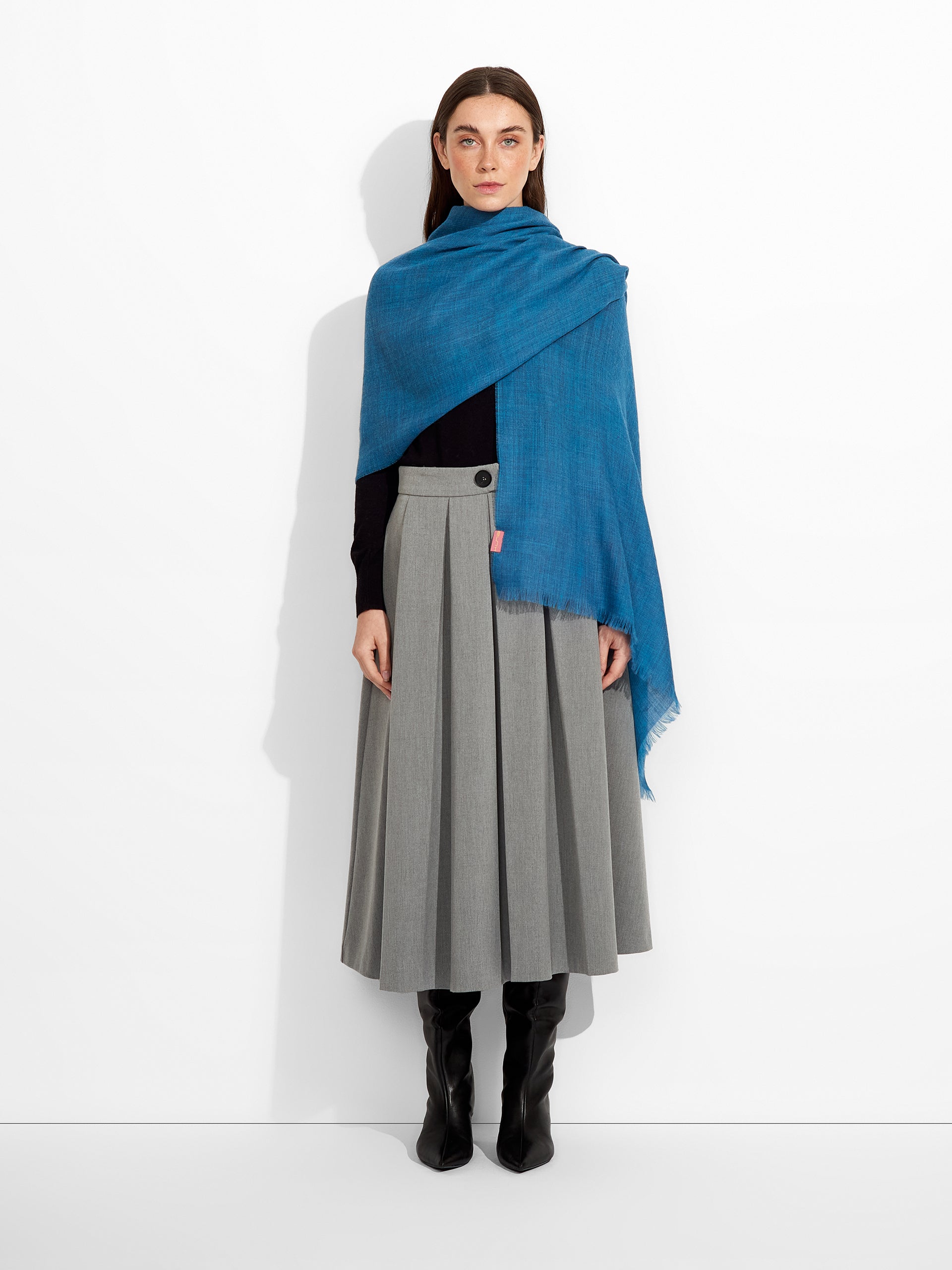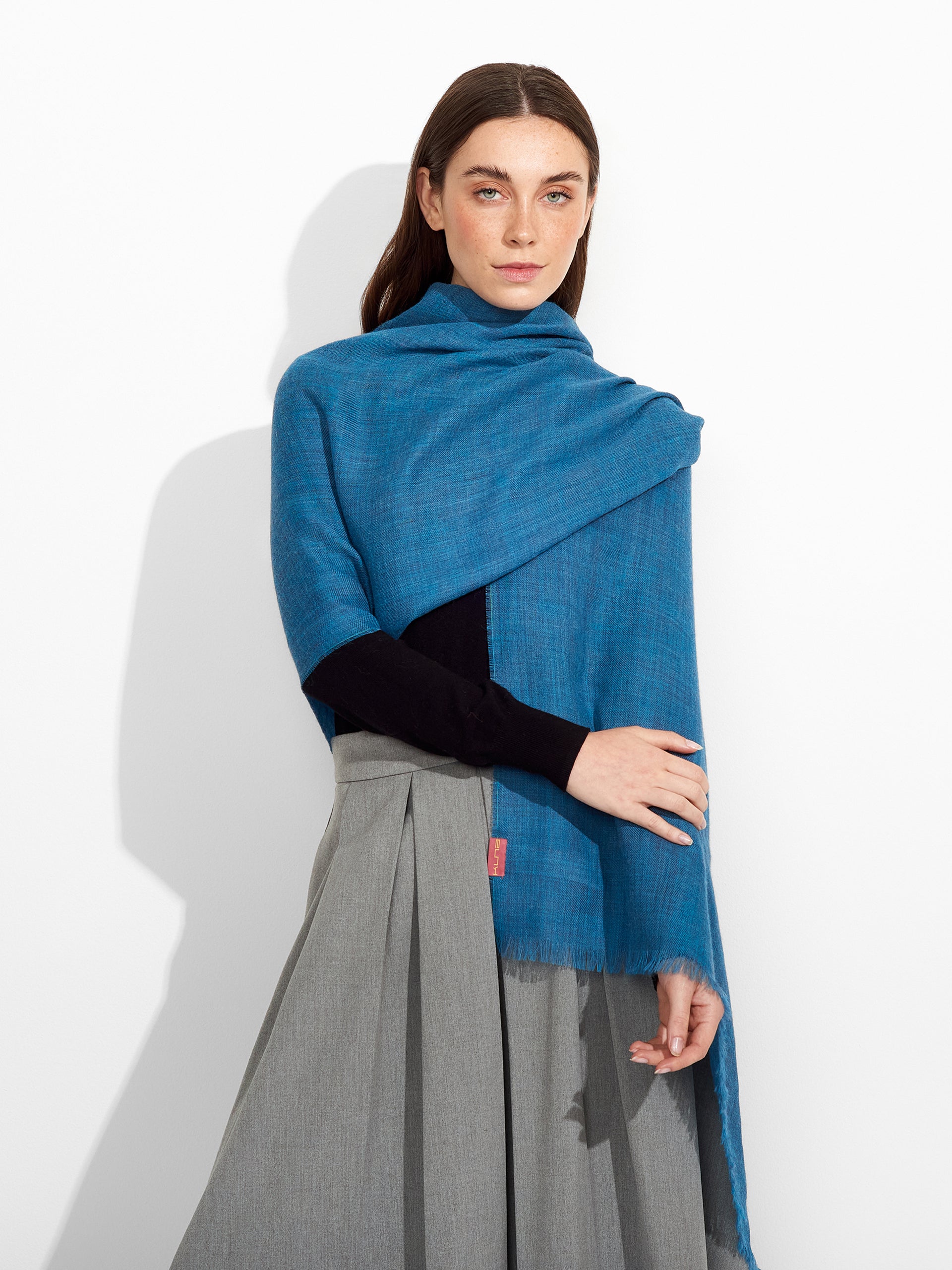 Estola Teaberry en tonalidad turquesa, de color entero, presenta bordes con flecos finos que aportan un acabado delicado. Confeccionada en baby alpaca y seda. | Material predominante: Baby Alpaca