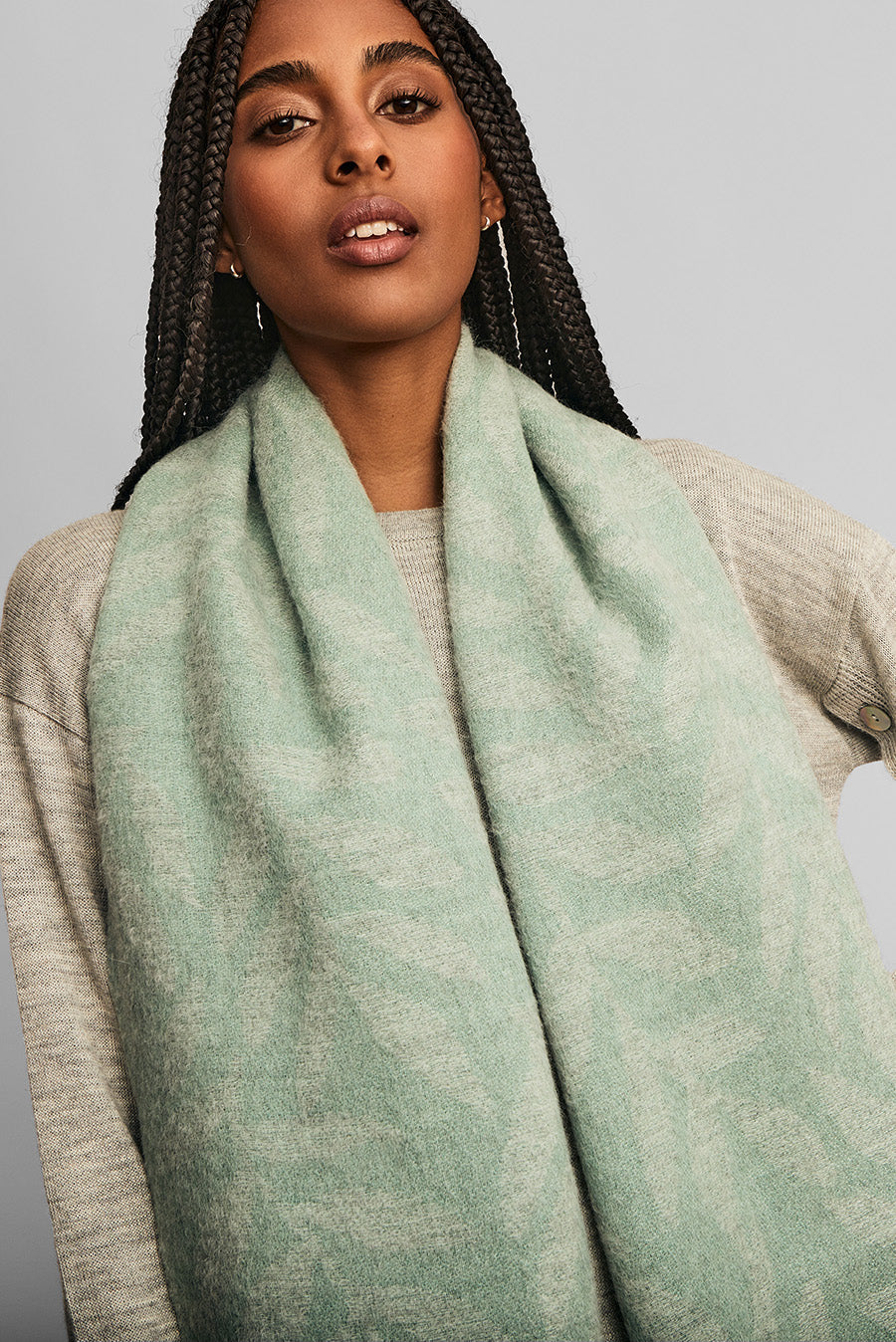 Nuestra estola Weinko esta hecha enteramente con las mejores fibras de baby alpaca. Encuentra este exclusivo accesorio en elegantes tonos y diseño de hojas que aportarán distinción a cualquier look. | Material predominante: Baby Alpaca
