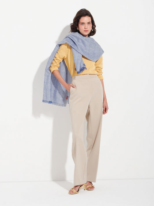 Estola Zoda en tonalidad azul, elaborada en una mezcla de baby alpaca, seda y lino....