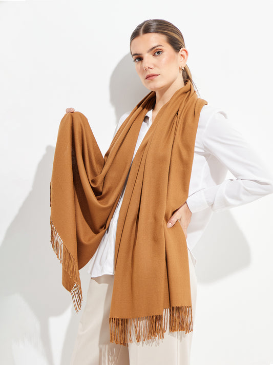 Elegante estola rectangular confeccionada en alpaca royal y seda con un orillo sutilmente desflecado y...