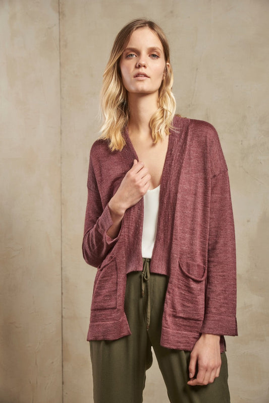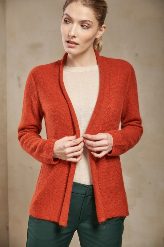 Ligero cárdigan Santal, en hermosos colores brillantes, hecho de 70% baby alpaca y 30% seda....