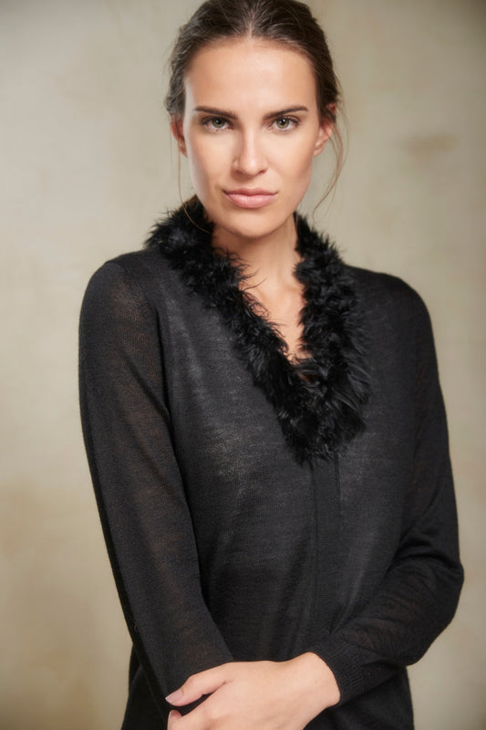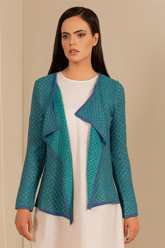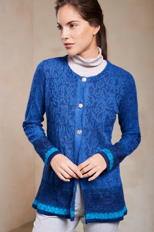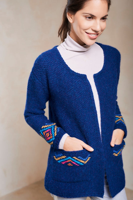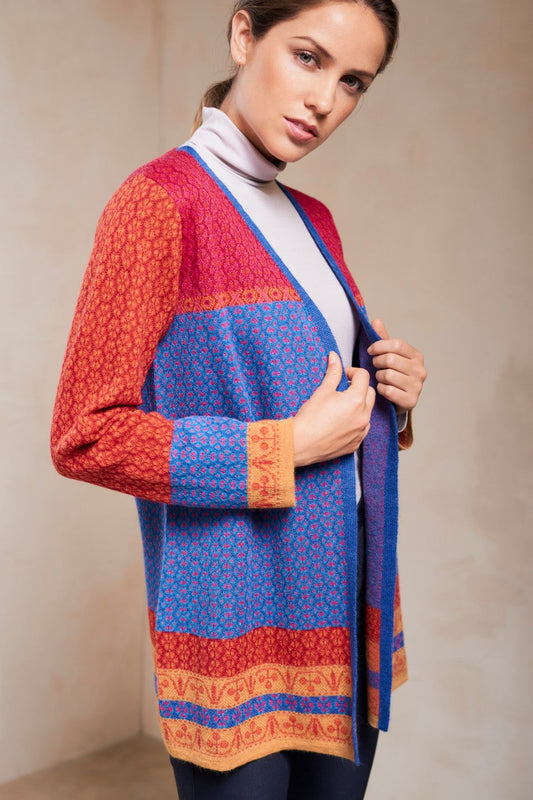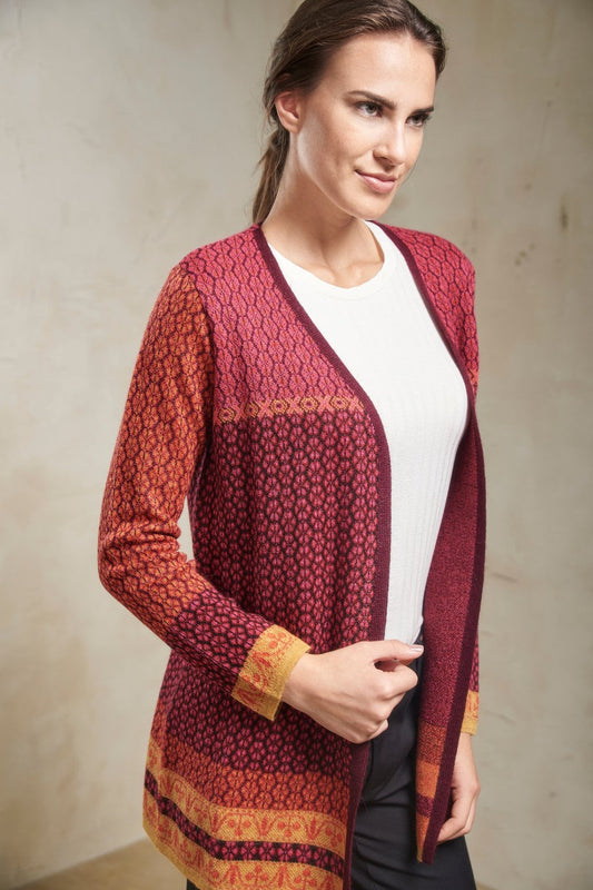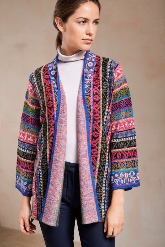 Ligero cárdigan Salma, en hermosos colores brillantes, hecho de 70% baby alpaca y 30% seda....