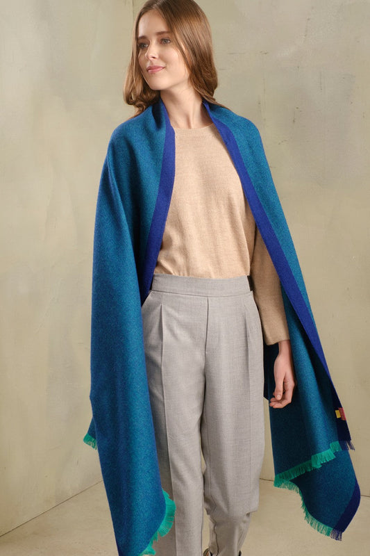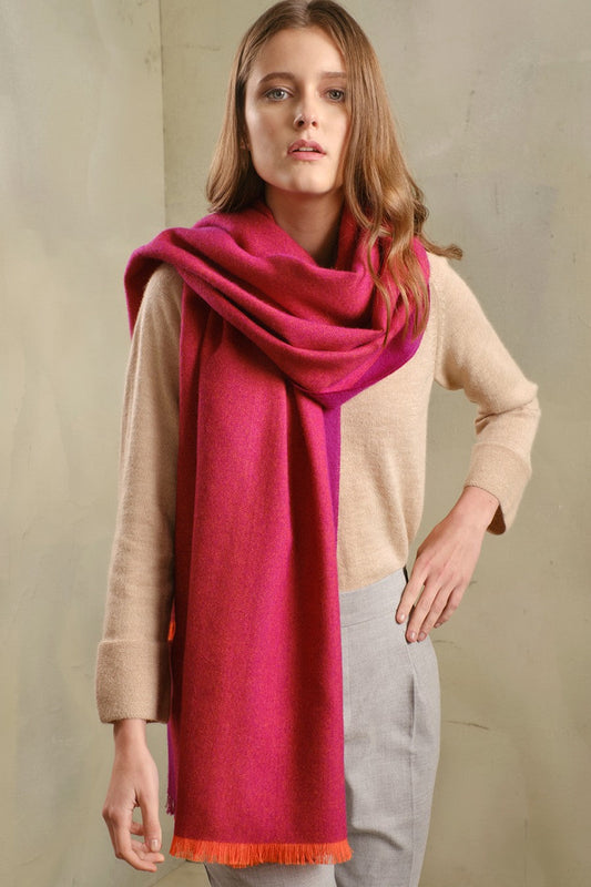 Pashmina de diseño simétrico en intensos colores. Confeccionada de baby alpaca y lana, complemento ideal...