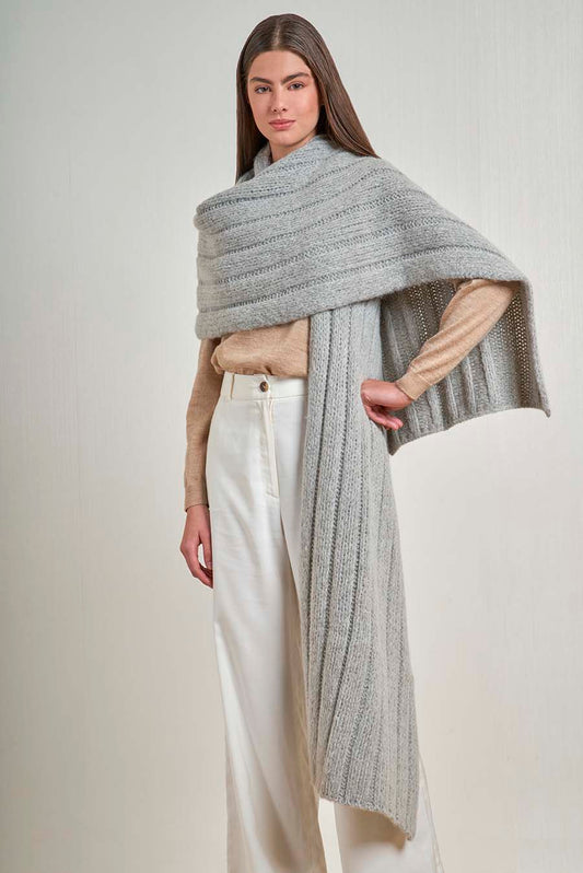 Amplia estola de tejido punto elaborada con baby alpaca y nylon. Déjate envolver por este...