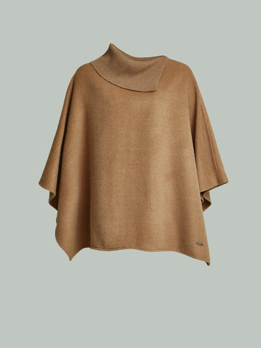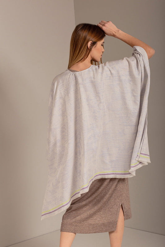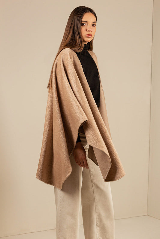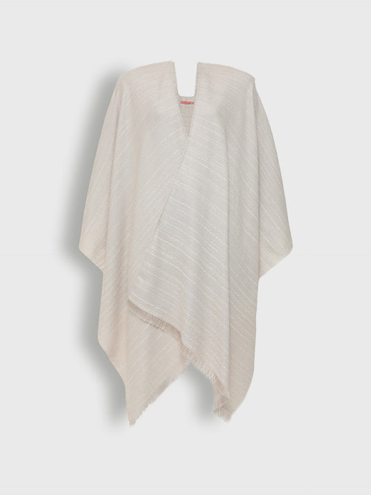 Capa Punto Zaeta en tonalidad beige, elaborada en baby alpaca y seda. Es un poncho...