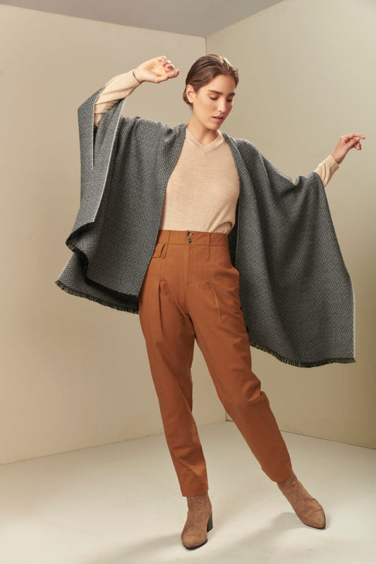 Siente la suavidad de la fibra de baby alpaca con seda en nuestra hermosa capa....