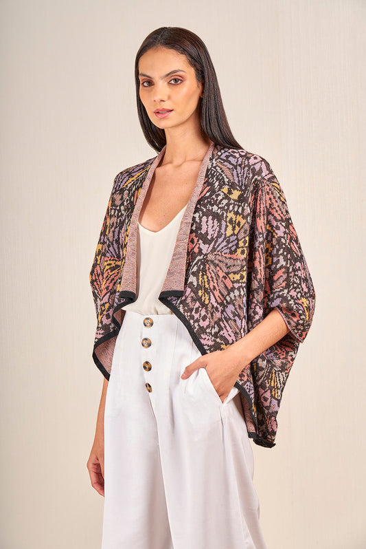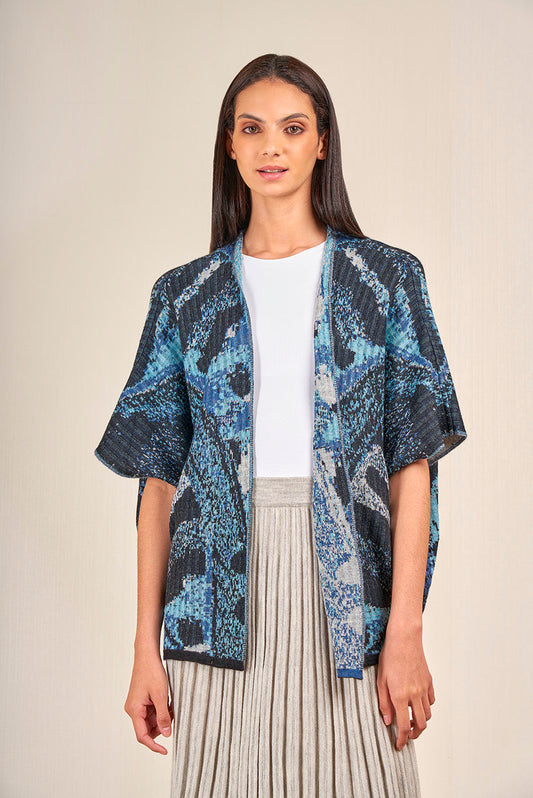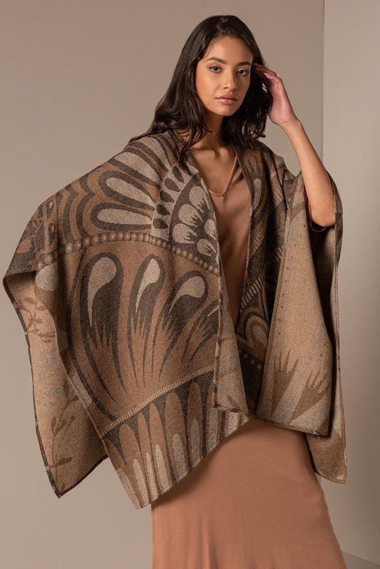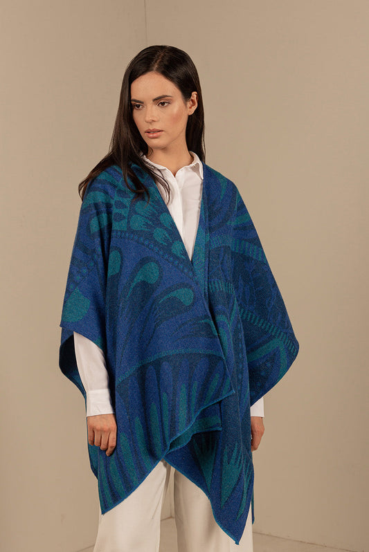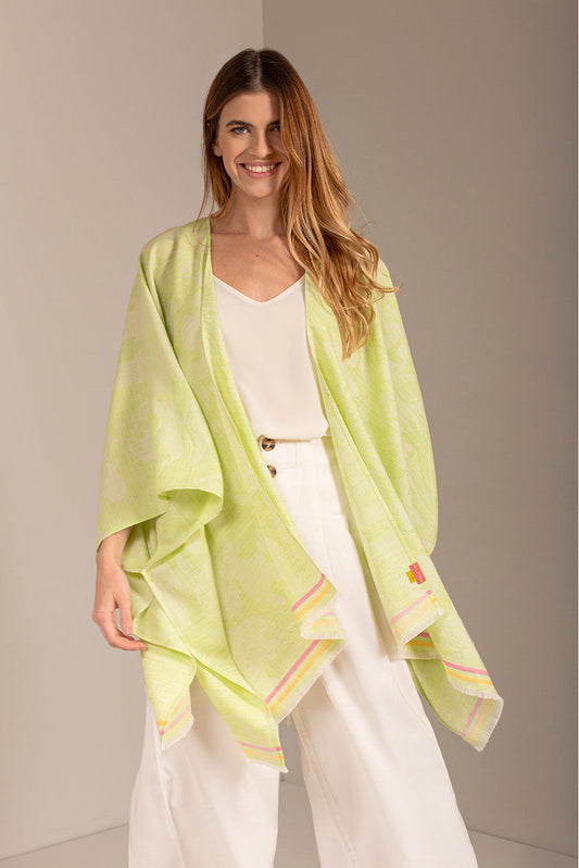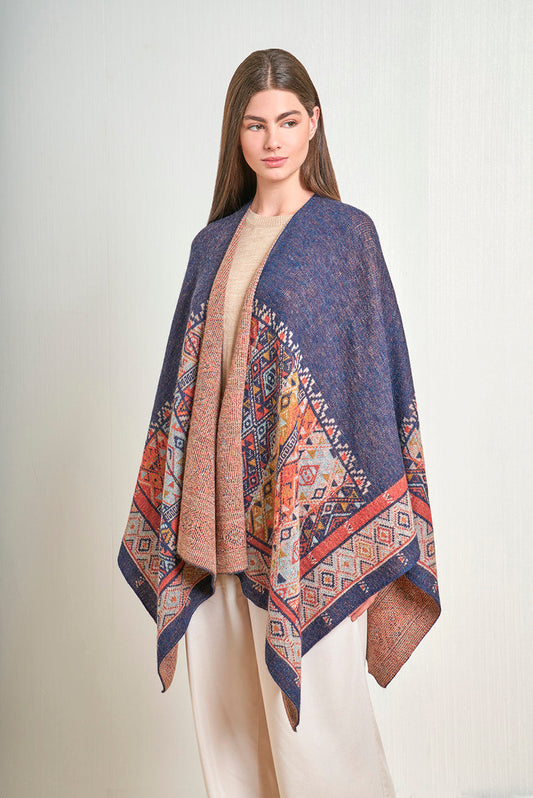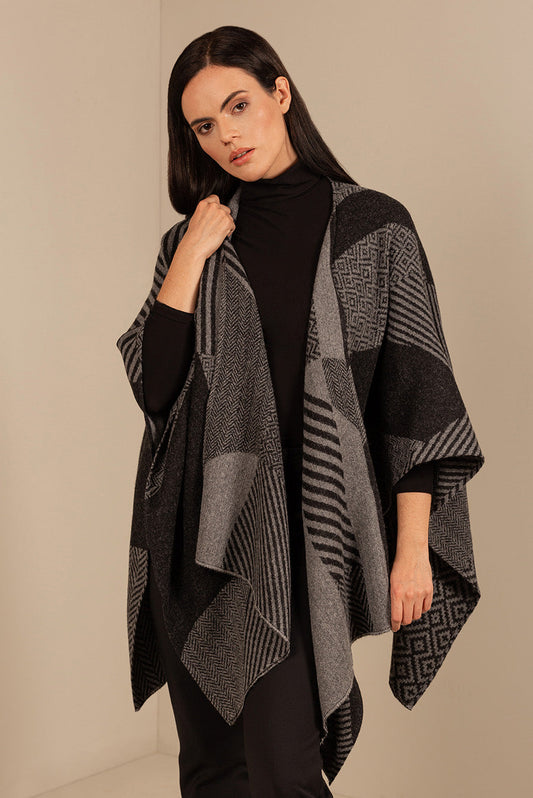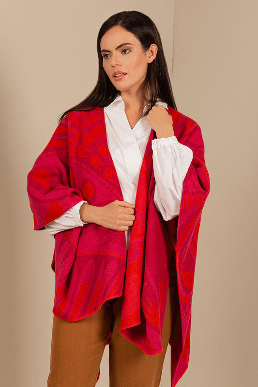 Un atractivo y colorido Jacquard tejido, esta capa es la prenda que reinventa todos tus...