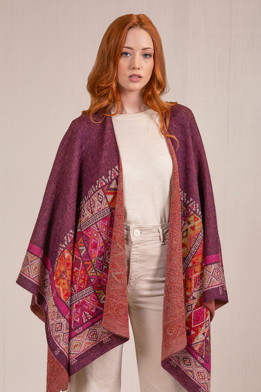 Capa Zareli en tonalidad morado, confeccionada en baby alpaca y seda. Es una capa doble...