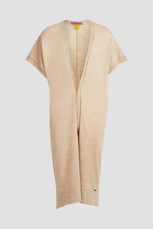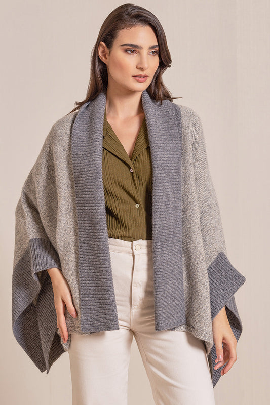 Capa Punto Zarina en tonalidad beige, confeccionado en baby alpaca y seda. Es un poncho...