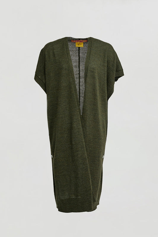 Capa Zareli en tonalidad verde, confeccionada en baby alpaca y seda. Es una capa doble...