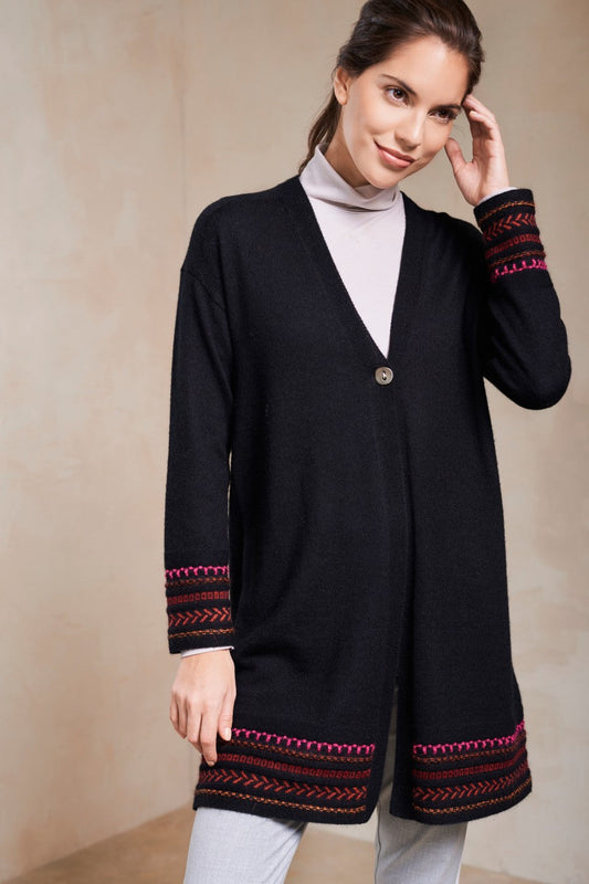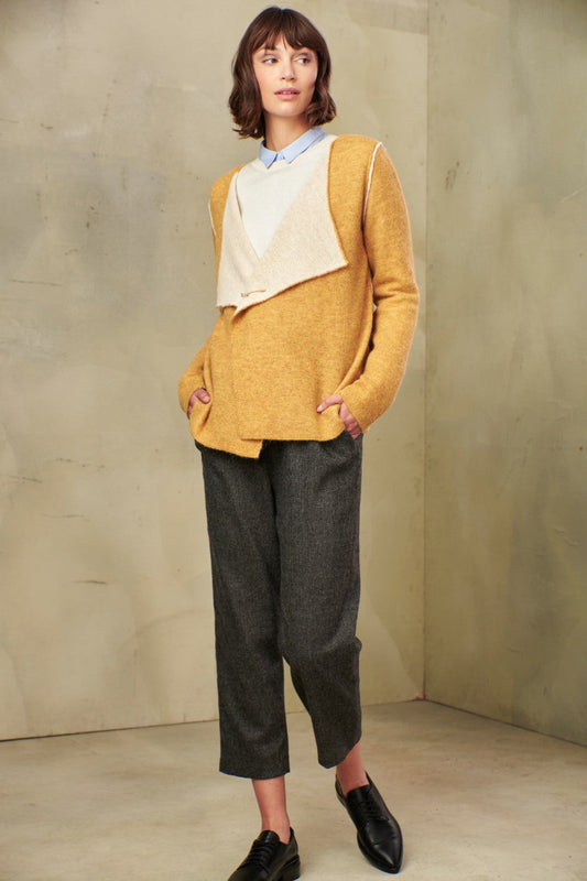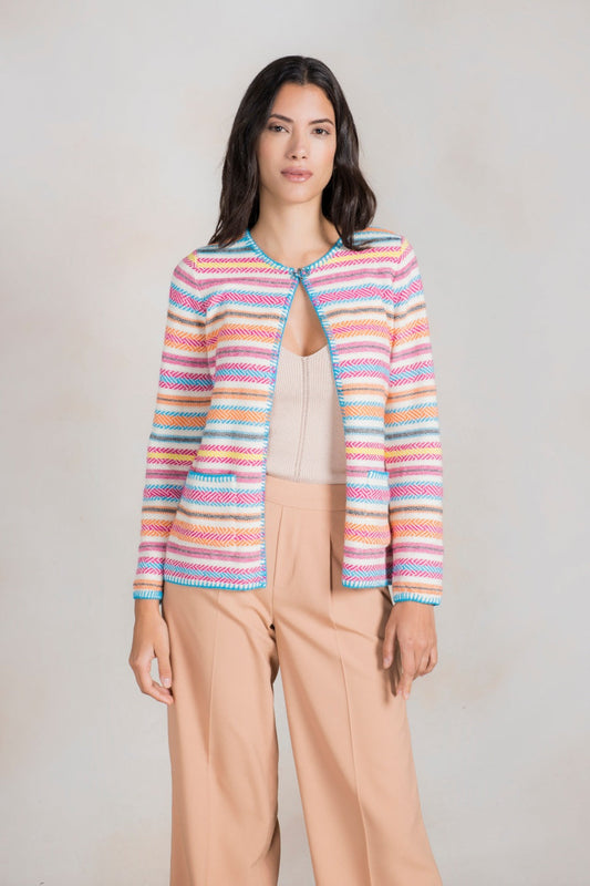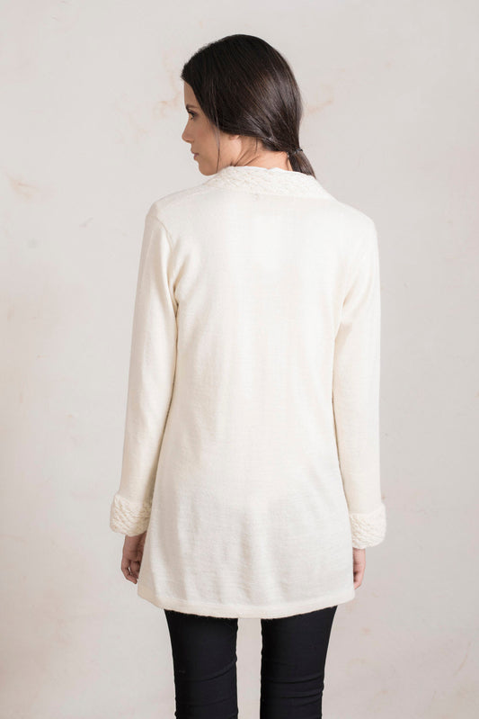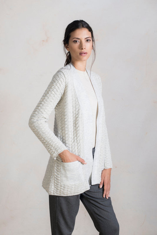 Elegante cárdigan reversible confeccionado de baby alpaca. Otorga elegancia y finura a cualquier atuendo. |...