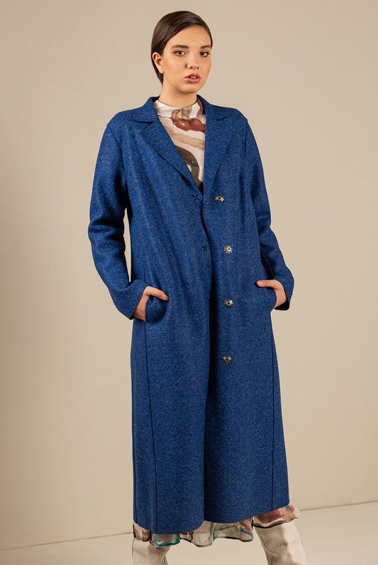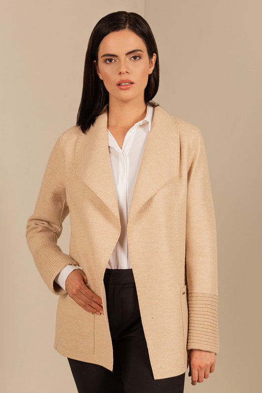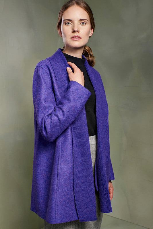 Elegante abrigo en tonos coloridos. Su excelente caída y detalle de bandas tejidas hacen de...