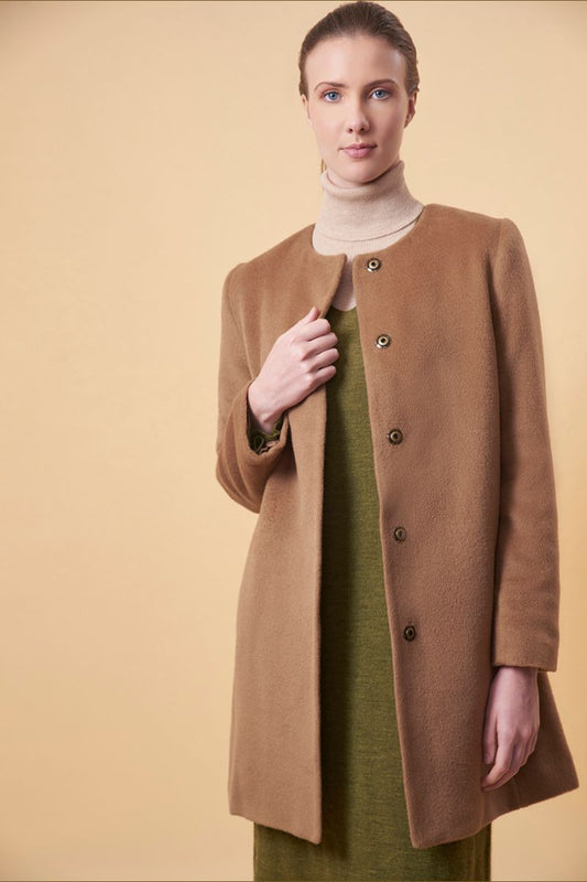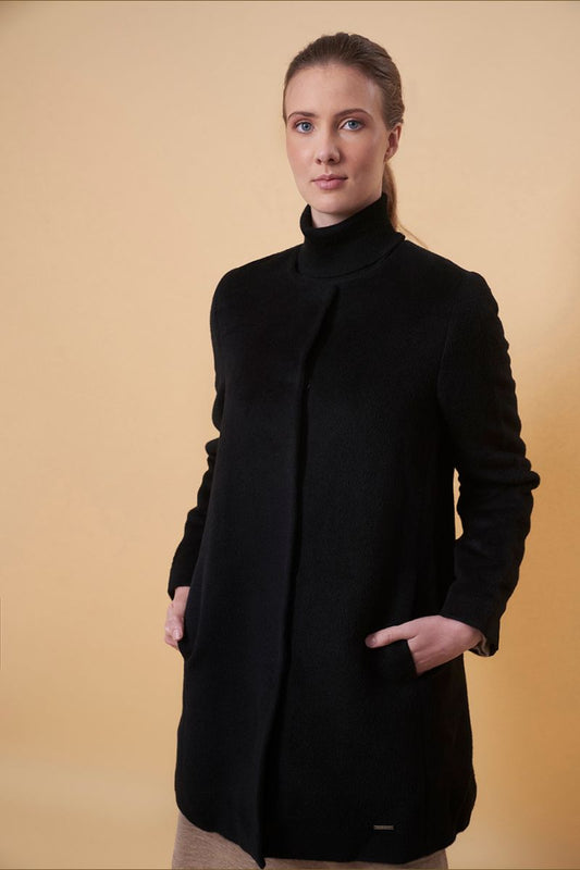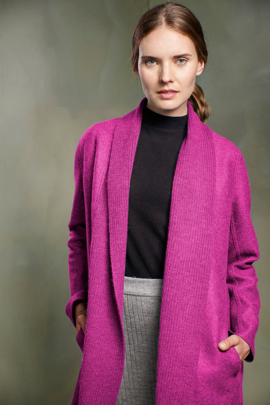 Acogedor abrigo confeccionado en baby alpaca y lana. Disponible en hermosos colores brillantes perdectos para...