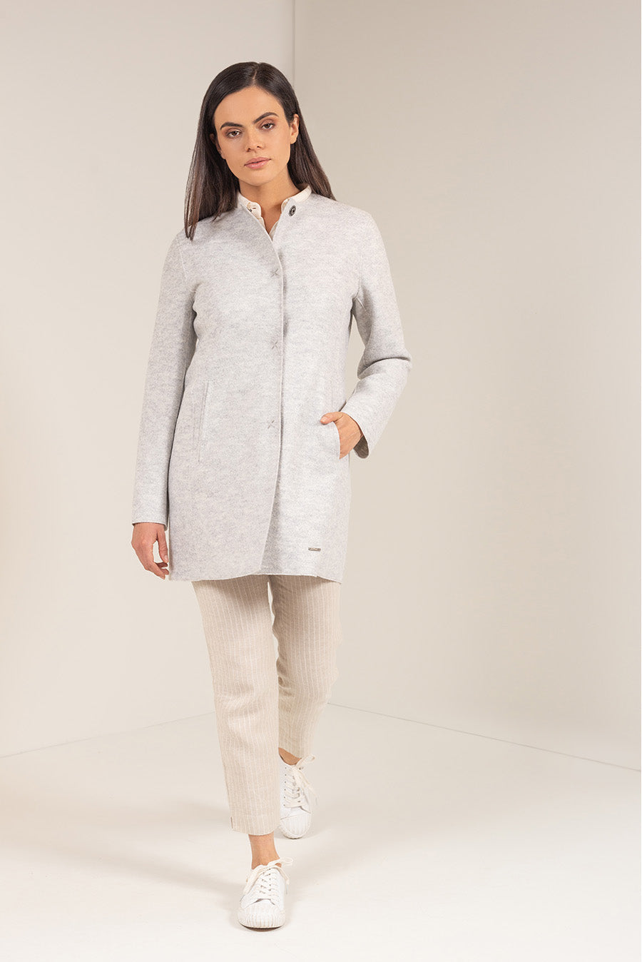 Un clásico abrigo de cuello redondo, infaltable en tus looks. La tela felted, compuesta de alpaca y lana hace que sea cómoda y versátil a la vez. | Material predominante: Alpaca & Lana