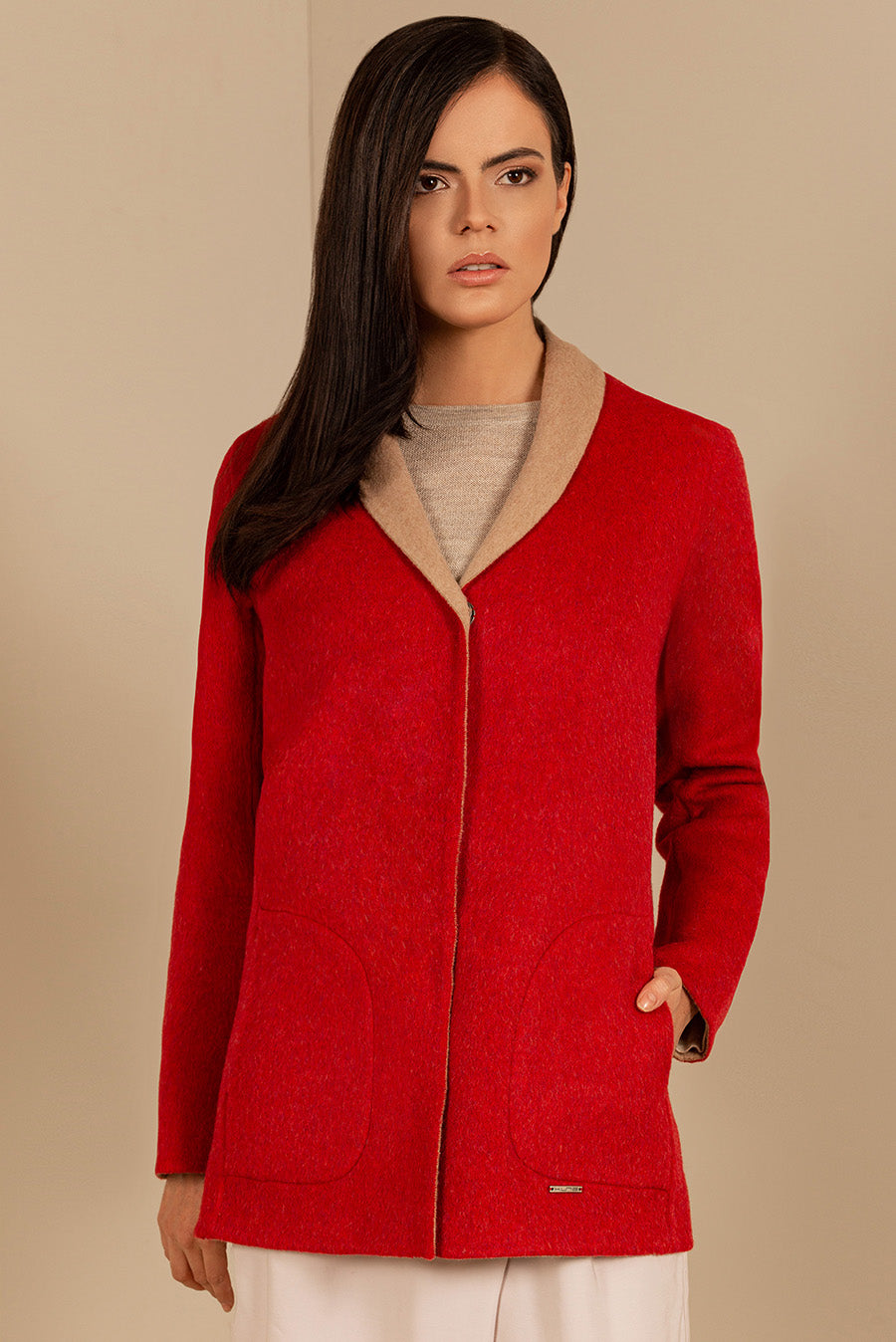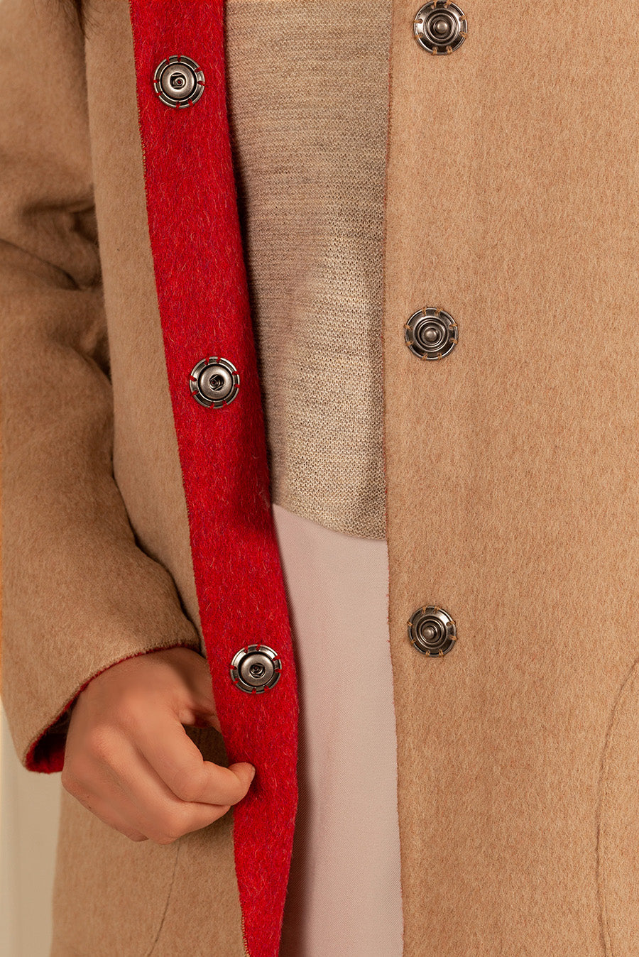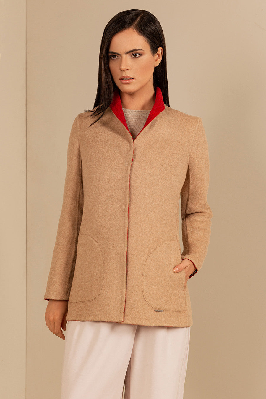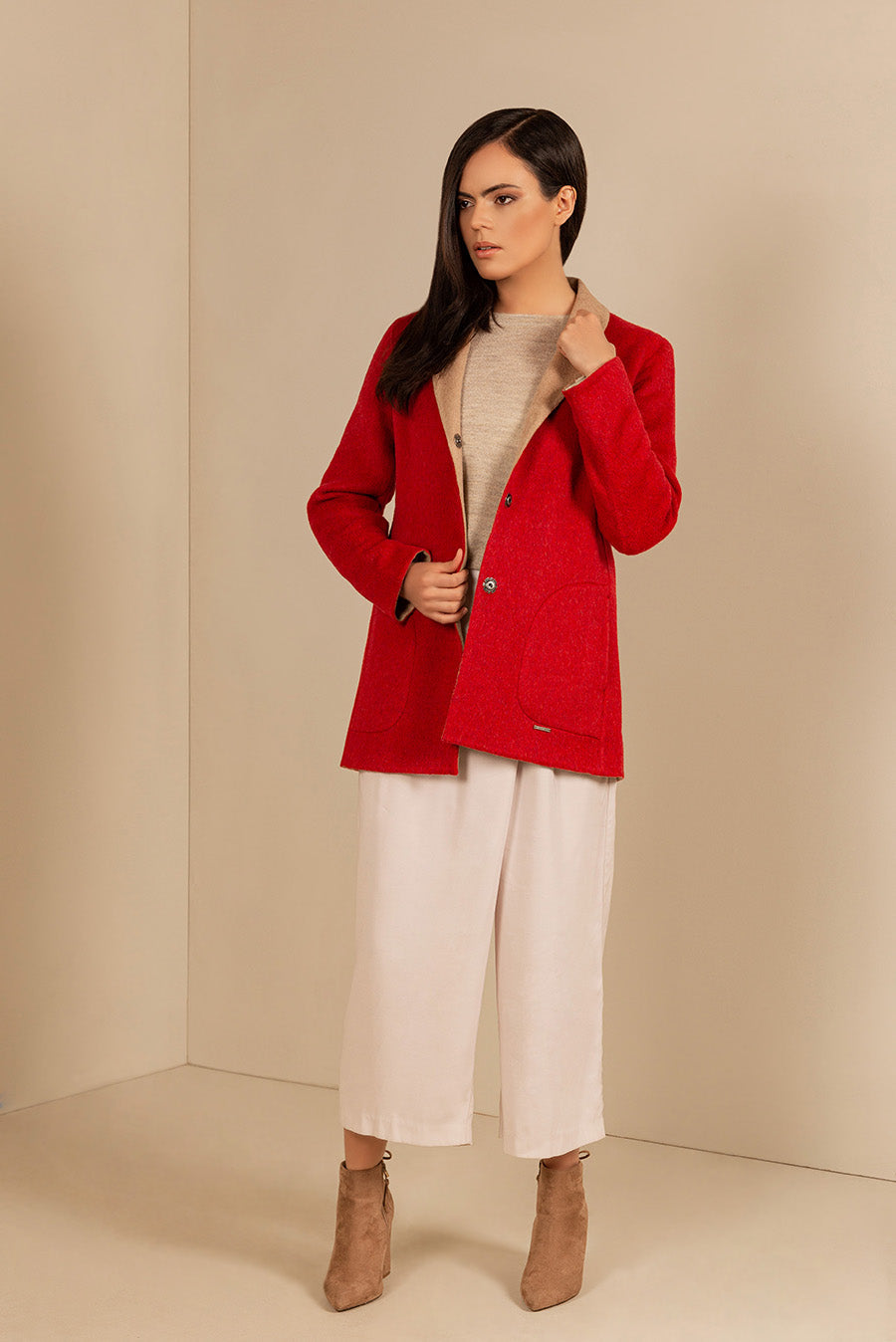 Abrigo Urgente De Baby Alpaca Color Rosso & Croissant
