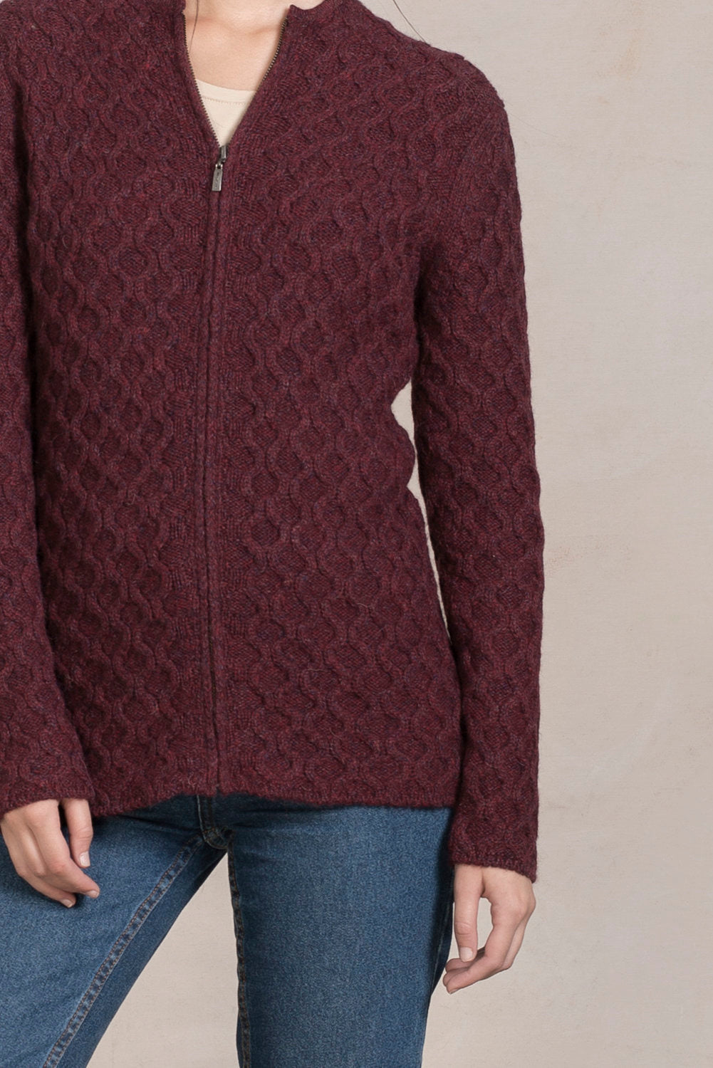 Cárdigan Prusia De Baby Alpaca Color Teaberry