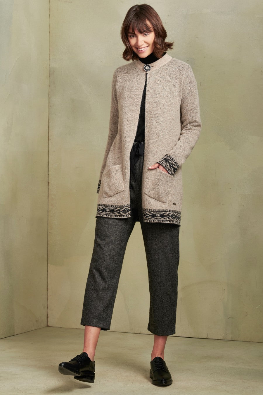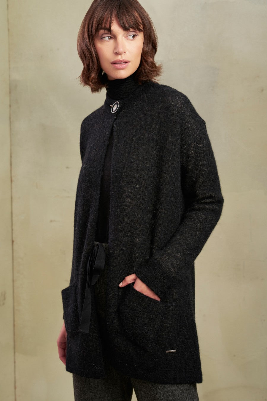 Elegante cárdigan reversible confeccionado de baby alpaca. Otorga elegancia y finura a cualquier atuendo. | Material predominante: Baby Alpaca