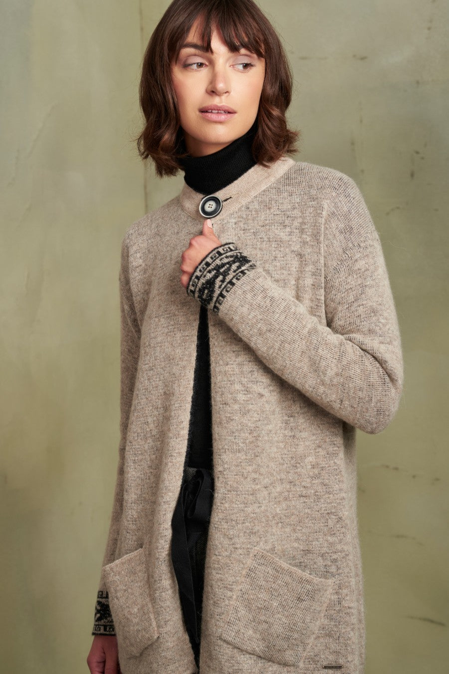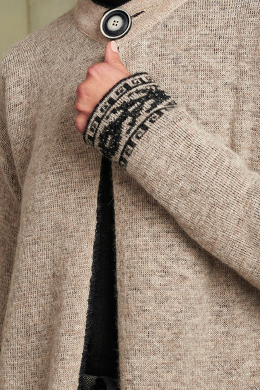 Cárdigan Reina De Baby Alpaca Color Black & Sabbia