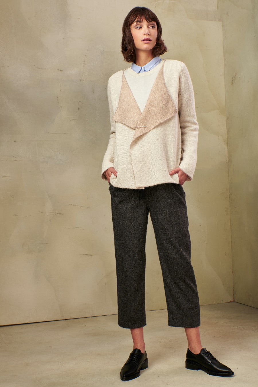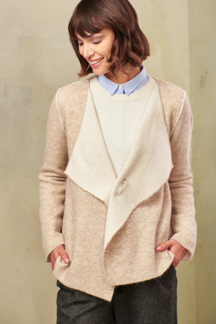 Cárdigan Relax De Baby Alpaca Color Sabbia & Ecru