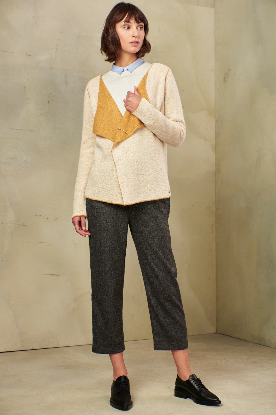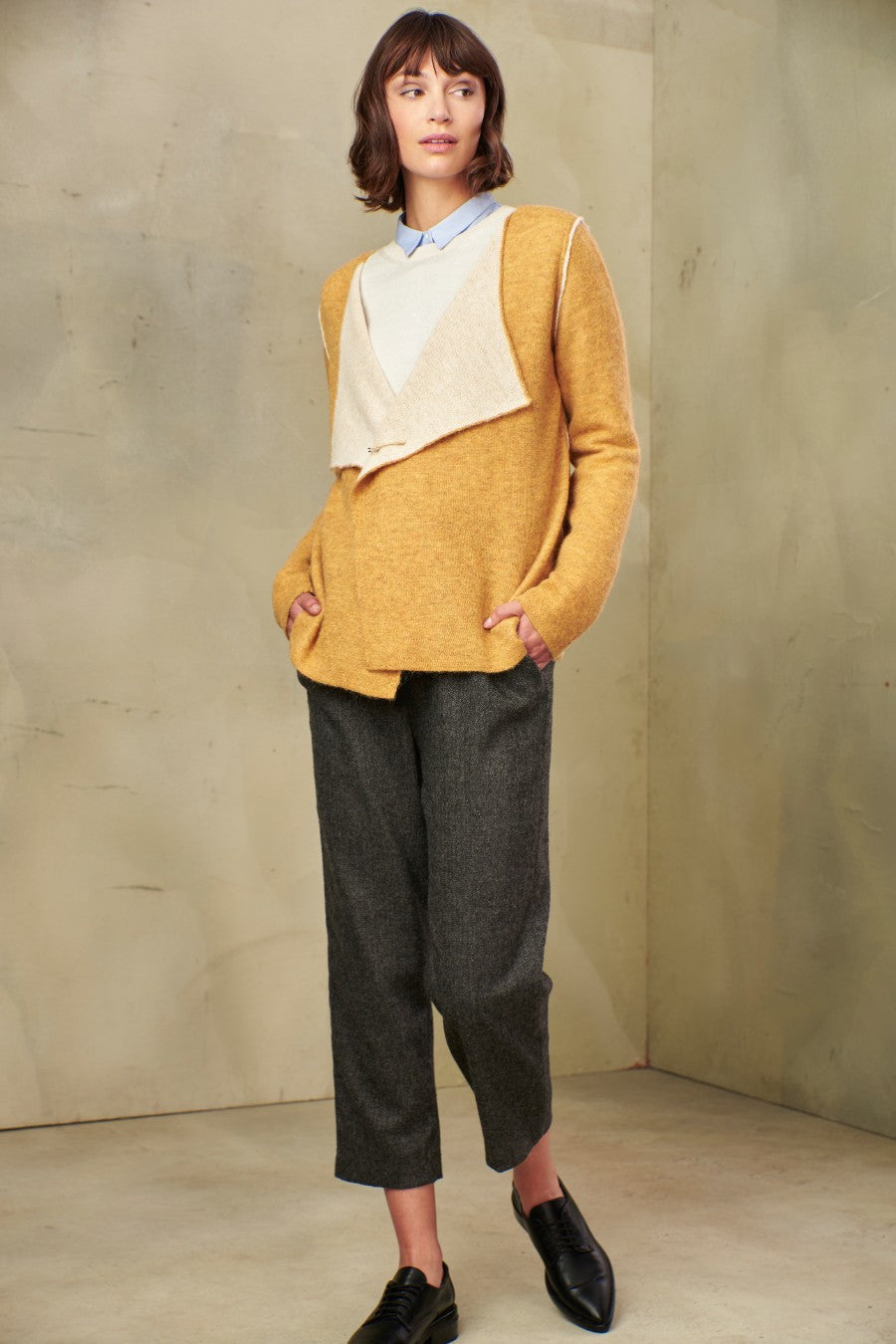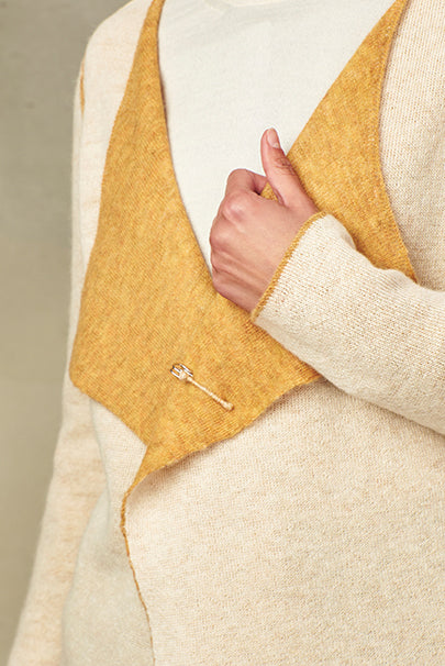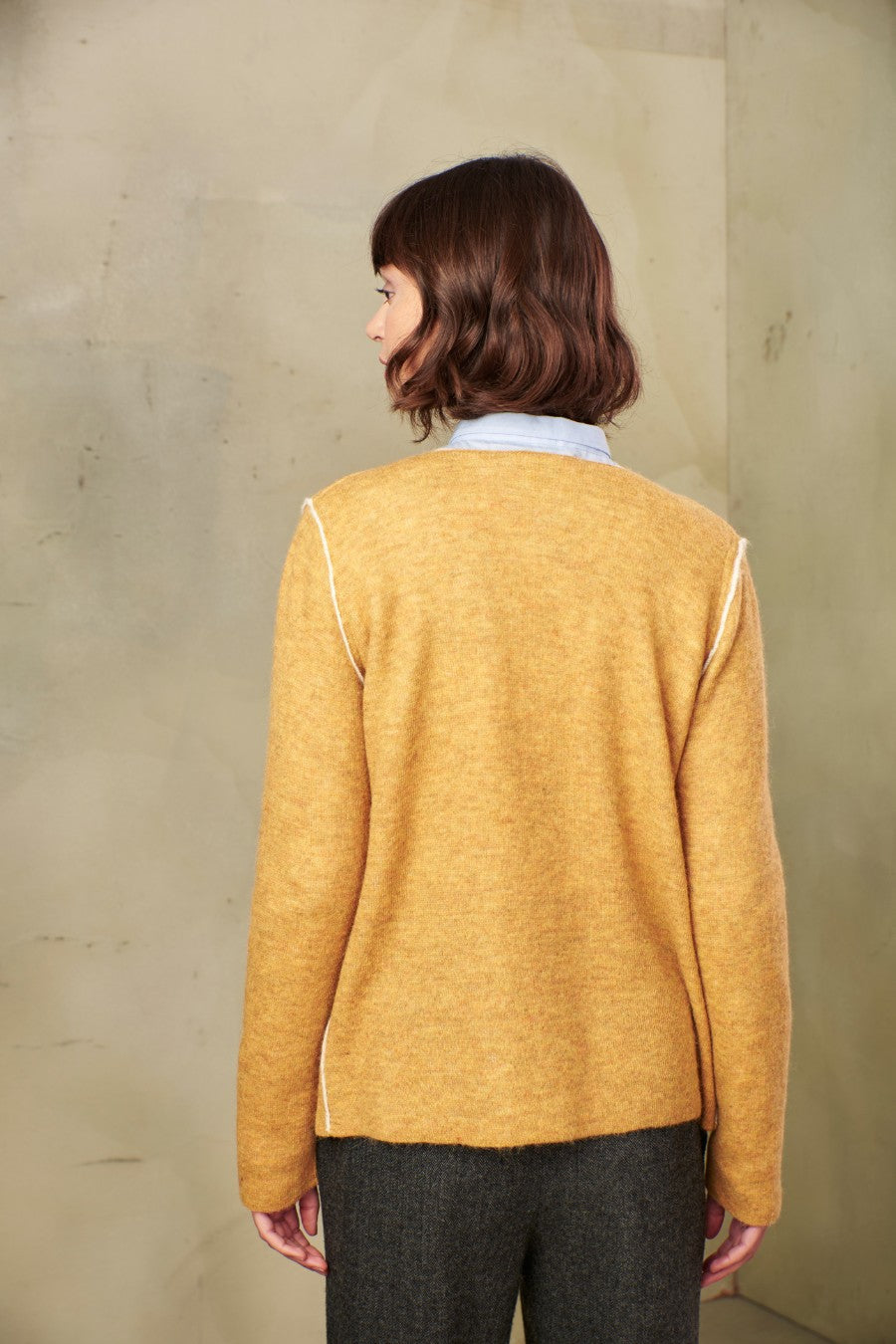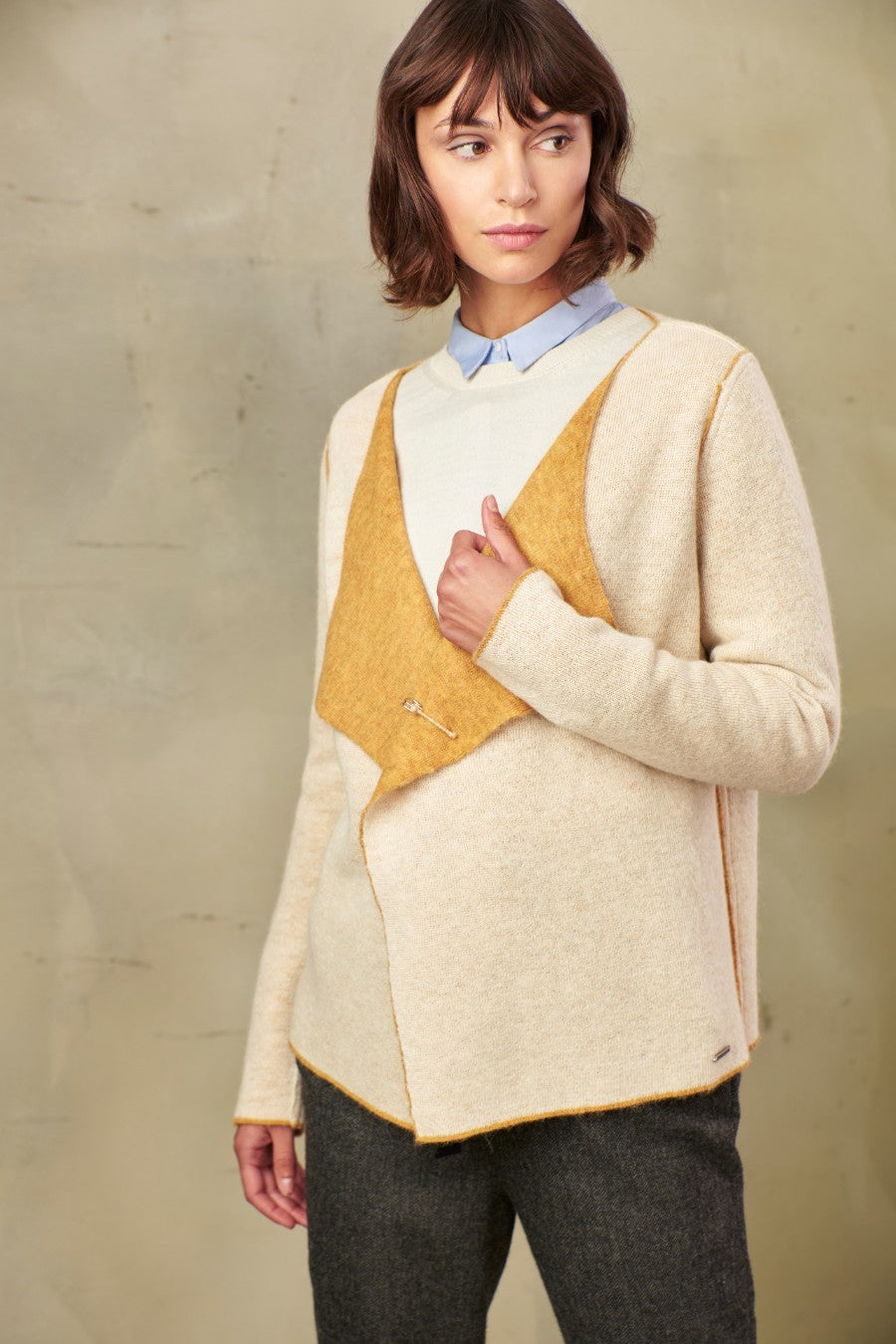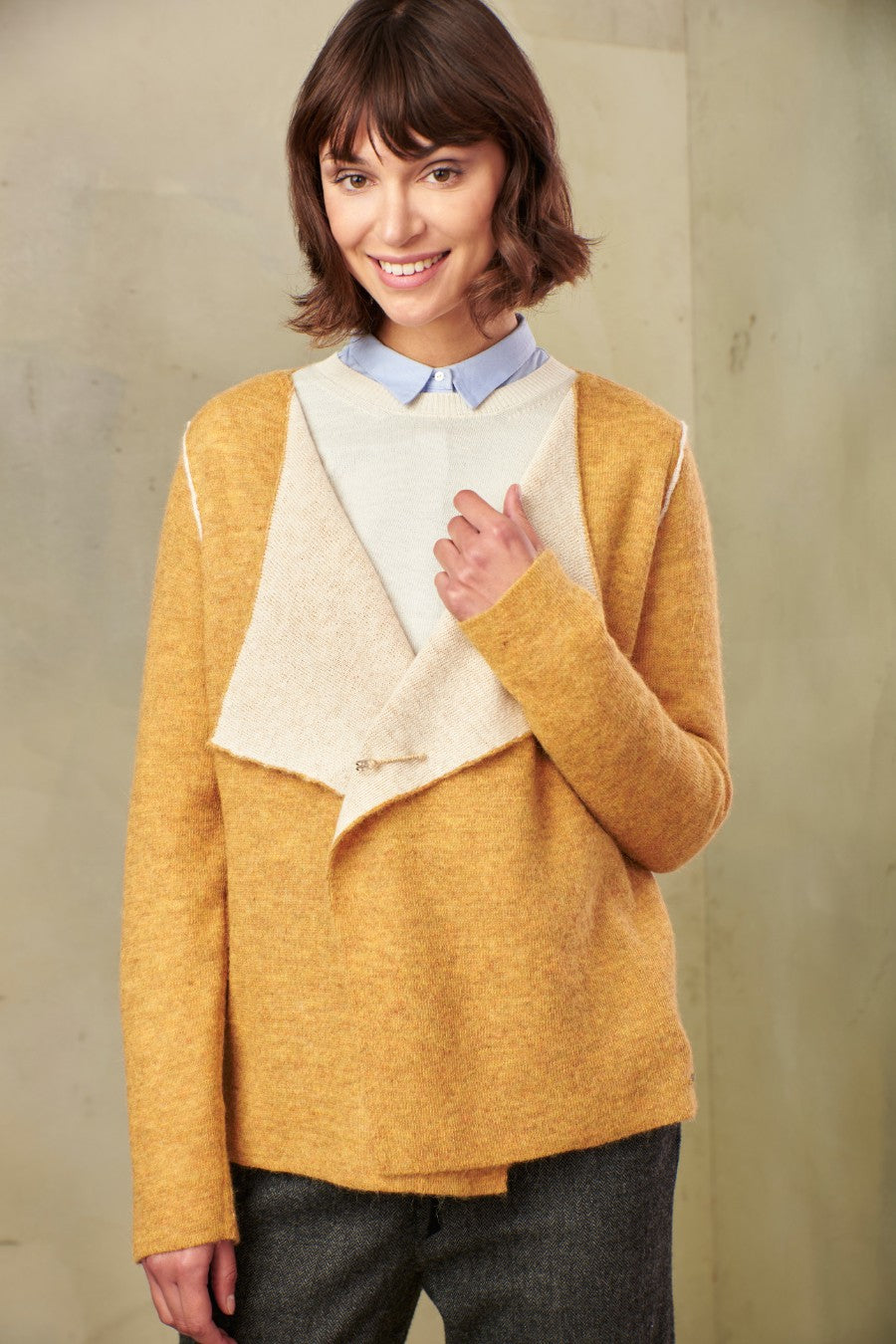 Cárdigan Relax De Baby Alpaca Color Senape & Ecru