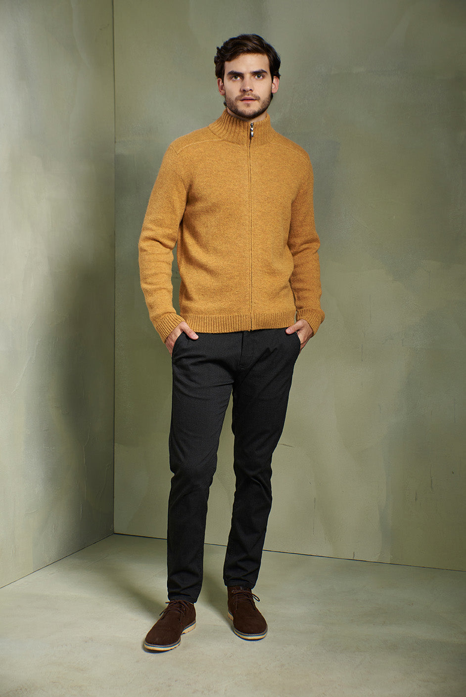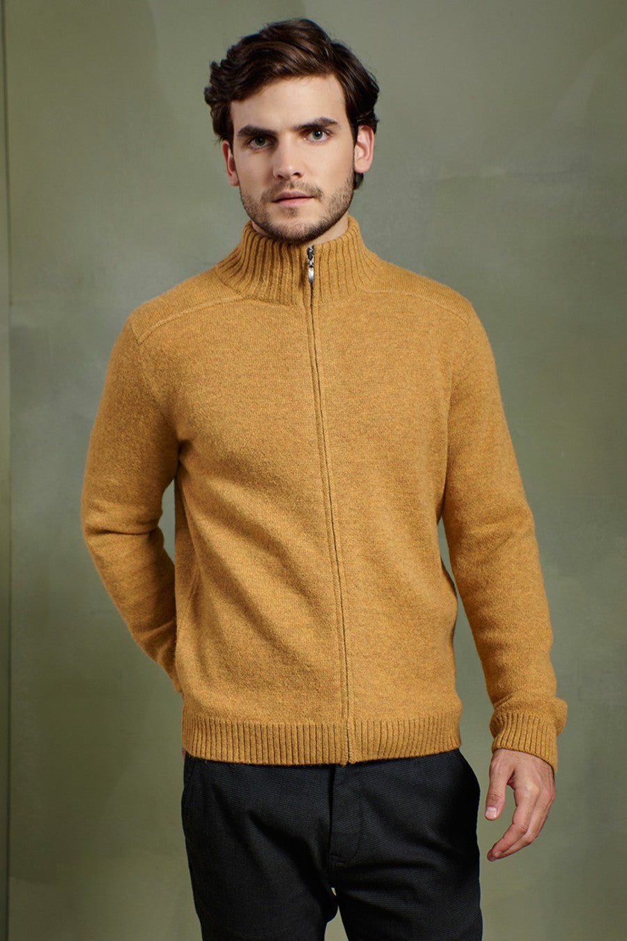 CÁRDIGAN RICARDO DE BABY ALPACA COLOR SENAPE