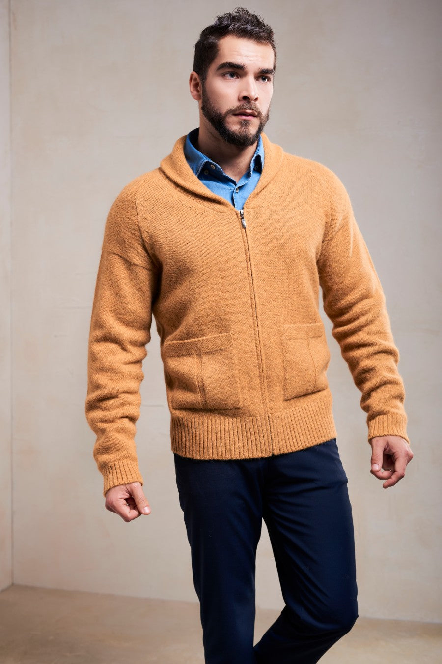 CÁRDIGAN SAMMY DE BABY ALPACA COLOR SENAPE