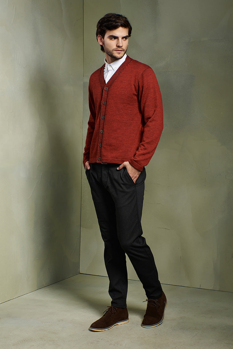 Elegante cárdigan en sobrios tonos, confeccionado con fina fibra de baby alpaca. Cuello en V y botones centrales. | Material predominante: Baby Alpaca