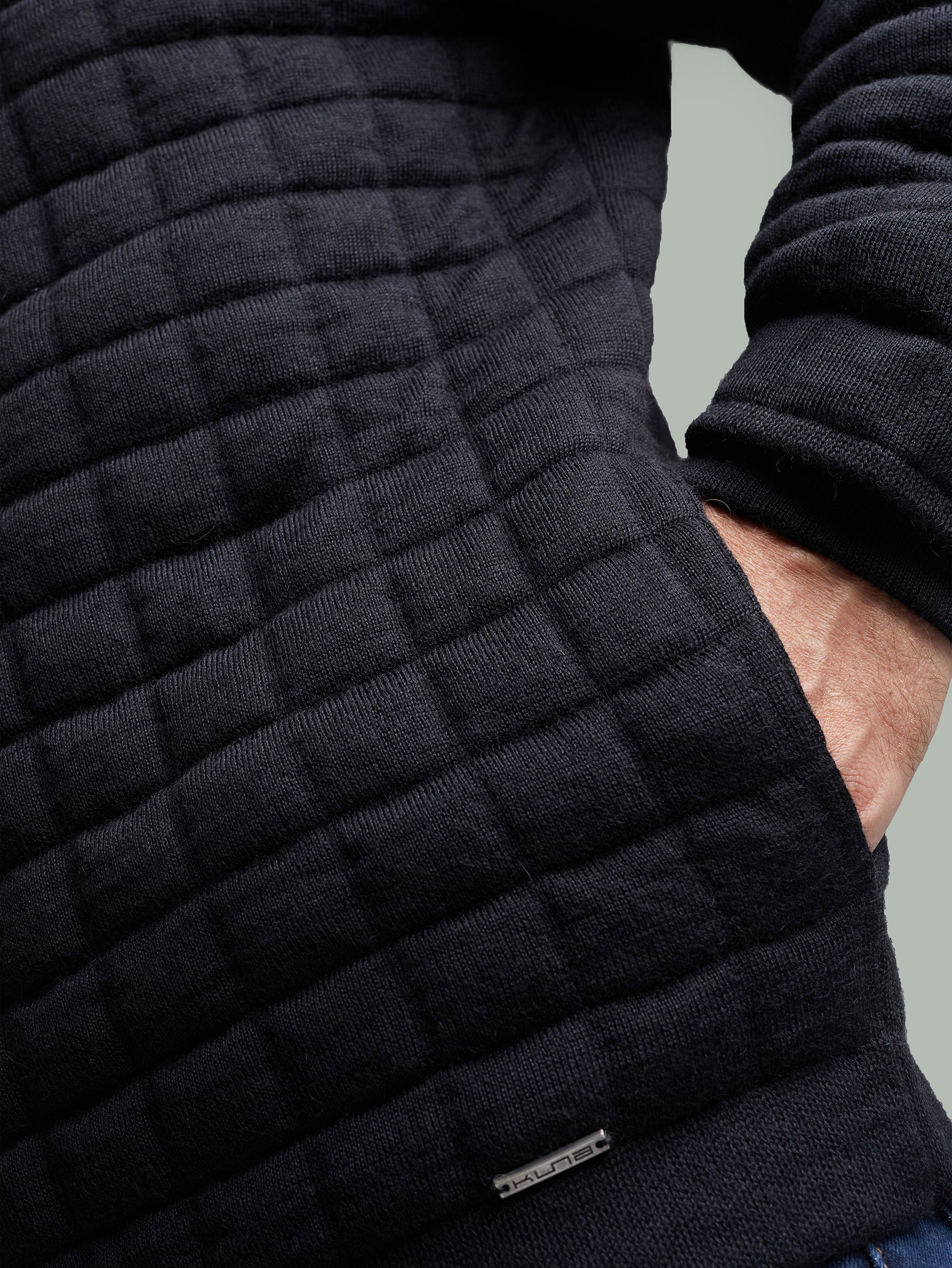 Sumérgete en la elegancia funcional con nuestro cardigan, una pieza que combina estilo y practicidad a la perfección. Su diseño moderno incluye un efecto quilted que añade un toque contemporáneo y sofisticado. Este cardigan no solo es una elección de moda consciente, sino también una opción versátil que se adapta a cualquier ocasión. | Material predominante: Baby Alpaca