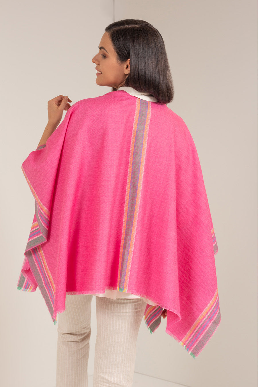 Ventilada, cómoda y versátil. Déjate envolver por esta suave capa, elaborada con seda y baby alpaca y sus alegres colores. | Material predominante: Baby Alpaca