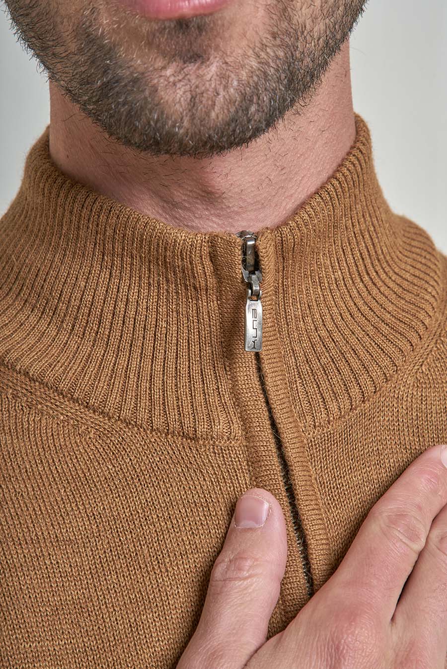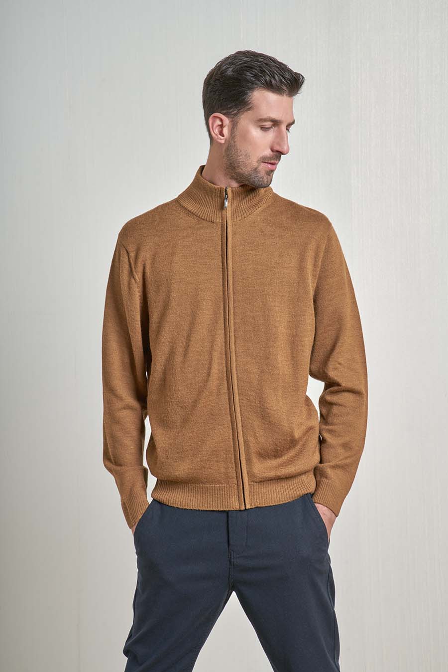 Cárdigan para hombres hecho de 100% baby alpaca, puede utilizarse como un suéter o también como una chaqueta, gracias a la cremallera que posee. Esta prenda está dentro de la gama de artículos indispensables que pueden utilizarse durante todo el año | Material predominante: Baby Alpaca
